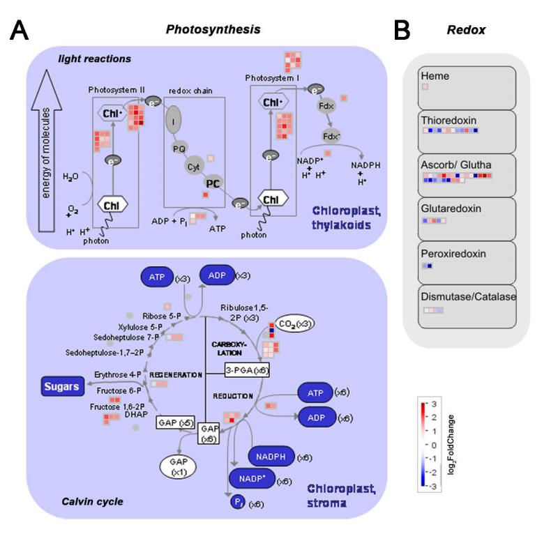 本研究通过外源喷施Z-3-HAC对花生幼苗预处理,结合转录组数据分析,表明外源Z-3-HAC显著上调了花生幼苗盐胁迫下叶片光合系统和抗坏血酸-谷胱甘肽循环系统相关通路的基因表达水平。生理数据分析表明,Z-3-HAC还提高了叶片细胞氧化还原平衡系统相关酶活性,维持了叶片中较高的AsA/DHA和GSH/GSSG,以及叶片和根系中较高的K+/Na+,降低了盐胁迫对植株生物量造成的损失,有效提高了花生幼苗耐盐性。