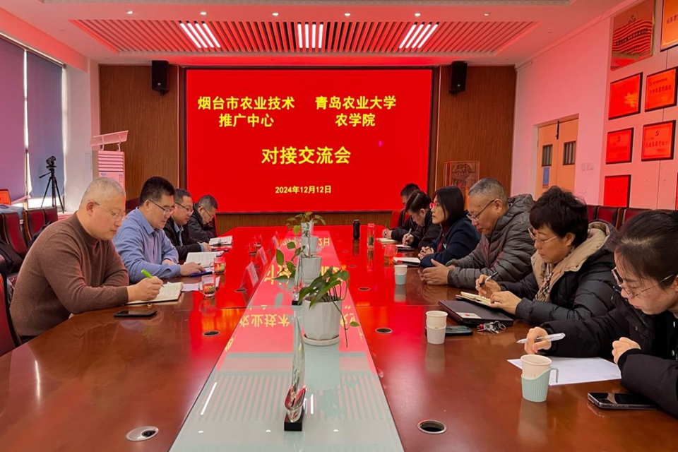 12月12日,烟台市农业技术推广中心副主任孙振军一行4人到今年会官网考察交流,今年会官网党委书记马伟萍,副院长刘义国、张恩盈及有关学术团队负责人出席交流会。