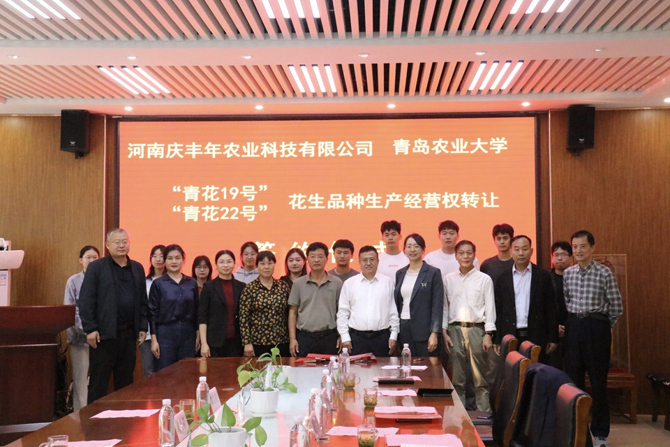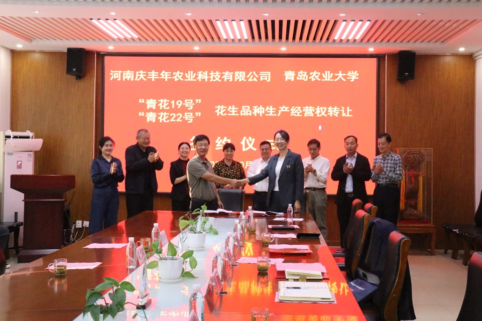孙庆杰代表学校致辞,介绍了今年会jinnianhuicom近年来的发展情况及取得的成绩,希望以此次签约仪式为契机,实现地方、企业、学校的密切合作,探索更广泛的合作机制,为国家乡村振兴和种业振兴贡献“青农力量”。邹晓霞详细介绍了青花19号、青花22号的优质特性,并表示未来团队将秉承创新精神,争取培育更多符合生产需求的新技术、新品种,扎实做好相关产品、成果推广和技术服务工作,扎根三农,助力国家乡村振兴。受让方河南庆丰年农业科技有限公司总经理陶志刚表示青花19号和青花22号丰产、抗逆性突出,多年多点区试均表现出明显优势,相信这两个品种投入市场对于推动花生品种的更新换代,推进花生种业发展前景巨大。