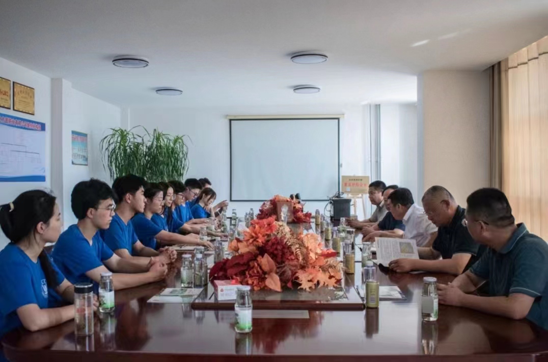 社会实践团首先参观考察了平邑方圆药业有限公司,平邑县政府科技副县长张恩盈、农业技术推广中心科长刘楠楠、平邑方圆药业有限公司总经理张桂成、办公室主任汪慧铖与社会实践团全体成员进行座谈。张恩盈讲述了对平邑金银花产业未来发展的构想,并指出,人才是发展的关键,要进一步加强校企合作,深入推进产教融合、协同育人,不断探索新的人才培养机制和模式,培养具有创新能力、符合产业要求的复合型、创新型人才。刘楠楠介绍了平邑金银花产业体系建设情况,讲解了金银花标准化、规范化种植方面相关知识。张桂成介绍了企业发展情况,对平邑金银花种植的历史进行了讲述,着重讲解了金银花的生理习性、产业结构和产品深加工方面知识。实践团队员们围绕金银花采摘时间、采摘方式、加工方法等方面,与企业负责人进行交流,为下一步调研工作深入开展奠定了基础。