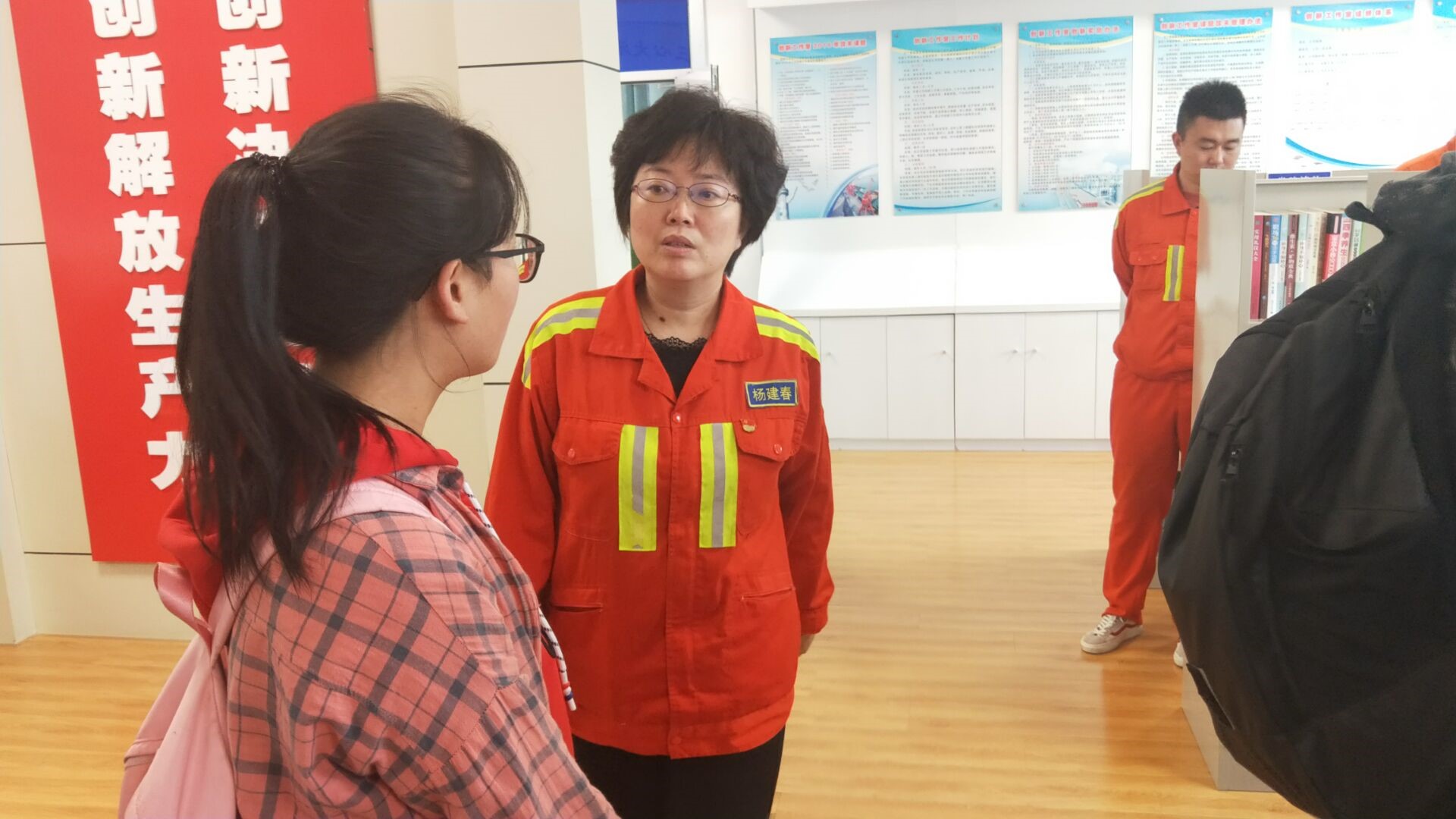第二站:固机大队。“青岛市党建主角”;工人们在这里进行机械操作,这里让我们见证了技术的力量。