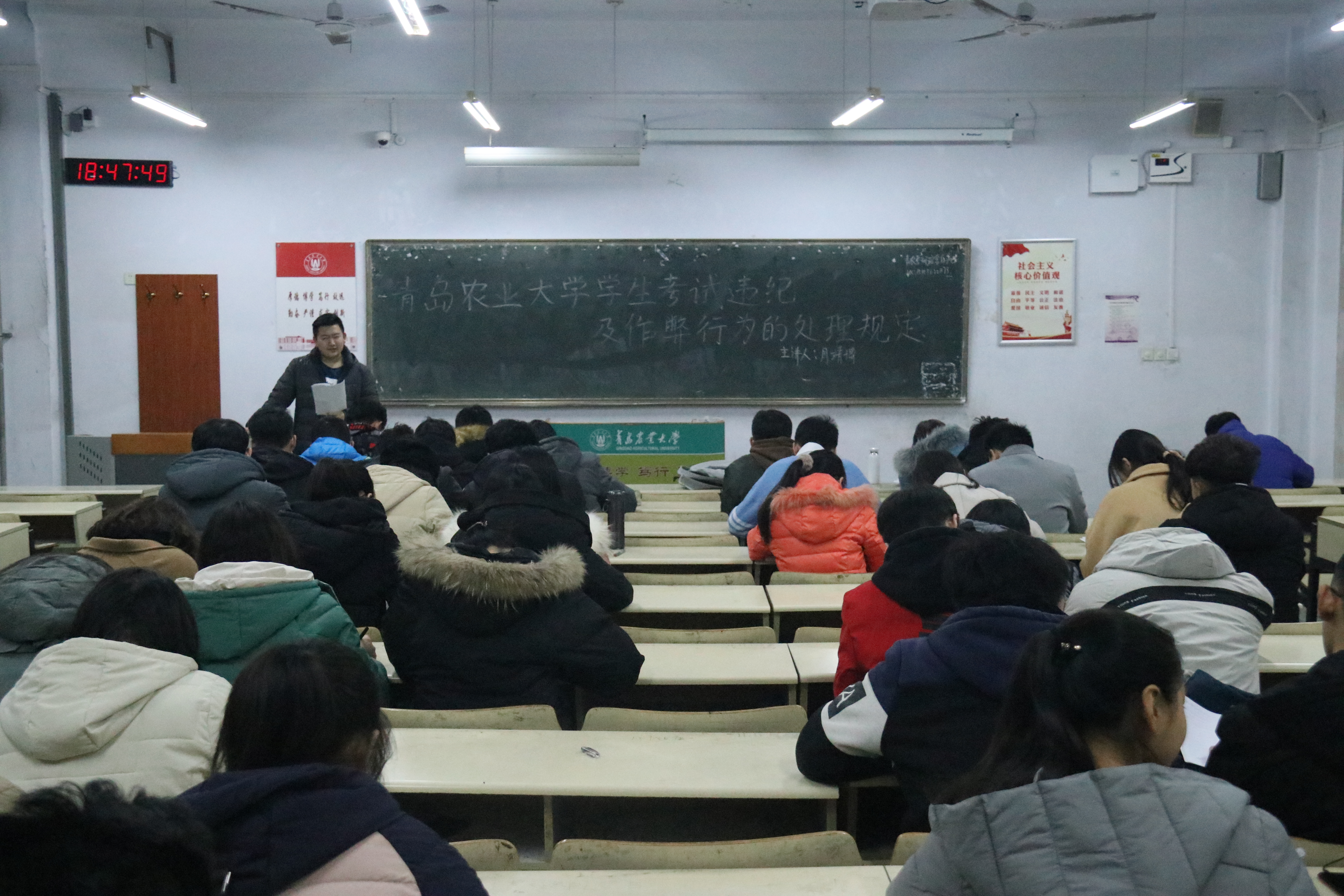 12月22日,今年会jinnianhuicom于教学区开展学习《今年会jinnianhuicom学生考试违纪及作弊行为的处理规定》主题团课,旨在树立良好的考试风气,保障考试学生的合法权益。2018、2019级全体团员积极参加。