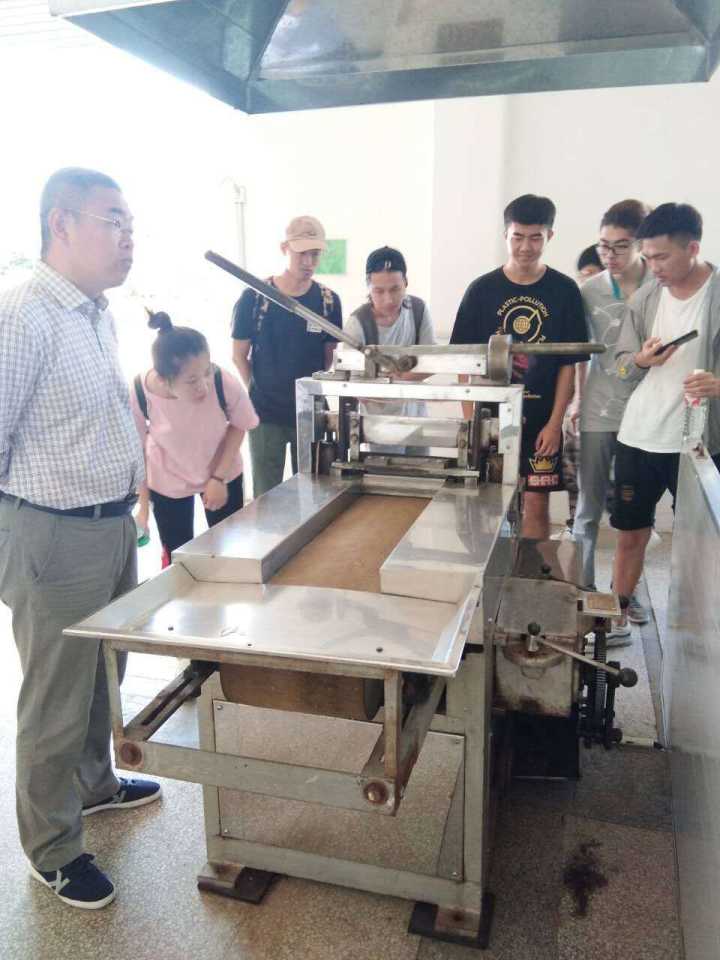 厂房内,一台台现代设备正在工作,不断发出机器轰鸣声。“你看,这个‘净选室’就是是用来净选的,所有的药材要先通过这里才能进行下一步加工;这个‘润洗室’里面的机器可以实现中药材的清洗、浸泡、淋洗等功能。”宋总介绍到。“这里的每个房间,职能不同而又环环相扣,不过几百平方米的场地便囊括了中药加工的全部流程。”接着,又带领大家进入房间内,细致解说了每一台机器的功能、操作方式以及注意事项,他独具特色地解说不仅让乏味难懂的设备知识变得生动易懂起来,还引得同学们笑声不断。