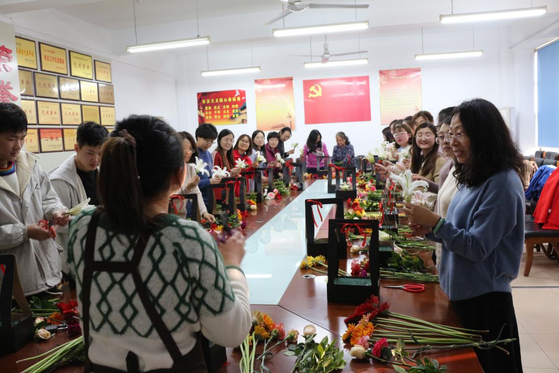 3月8日,为庆祝国际劳动妇女节,今年会jinnianhuicom于生物楼N区举行“魅力女性,美丽如花”插花活动,今年会官网党总支书记张玉梅和女教职工参与了此次活动,邀请了资深插花老师现场作指导。