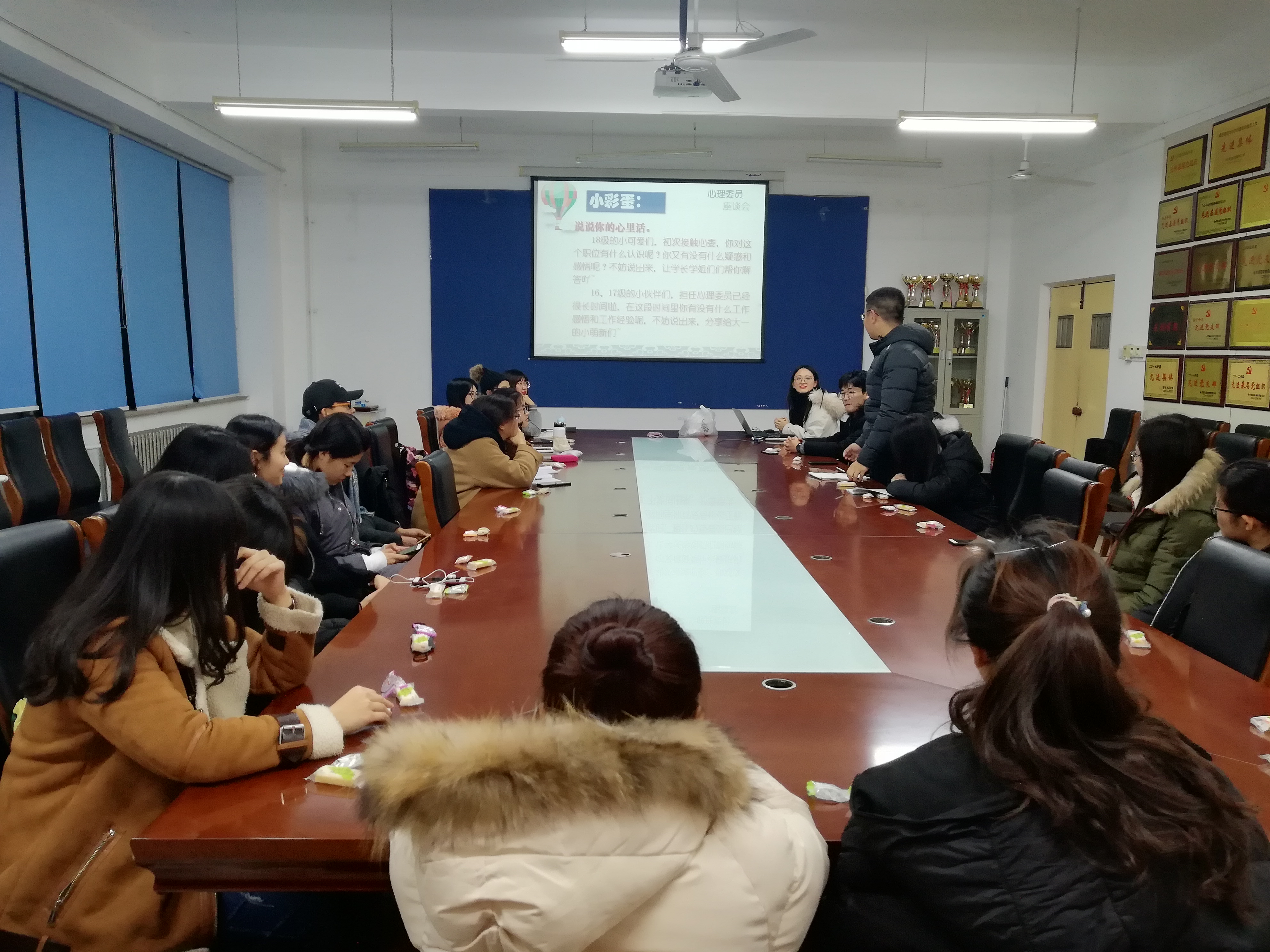 12月14日,今年会jinnianhuicom于生物楼N区开展“交流的是语言,沟通的是心灵——心理委员茶话会”,旨在宣传普及心理健康知识,提高心理委员的理论素养和工作能力。此次茶话会由学院学生会心理发展部部长单良主持,各班心理委员参加。