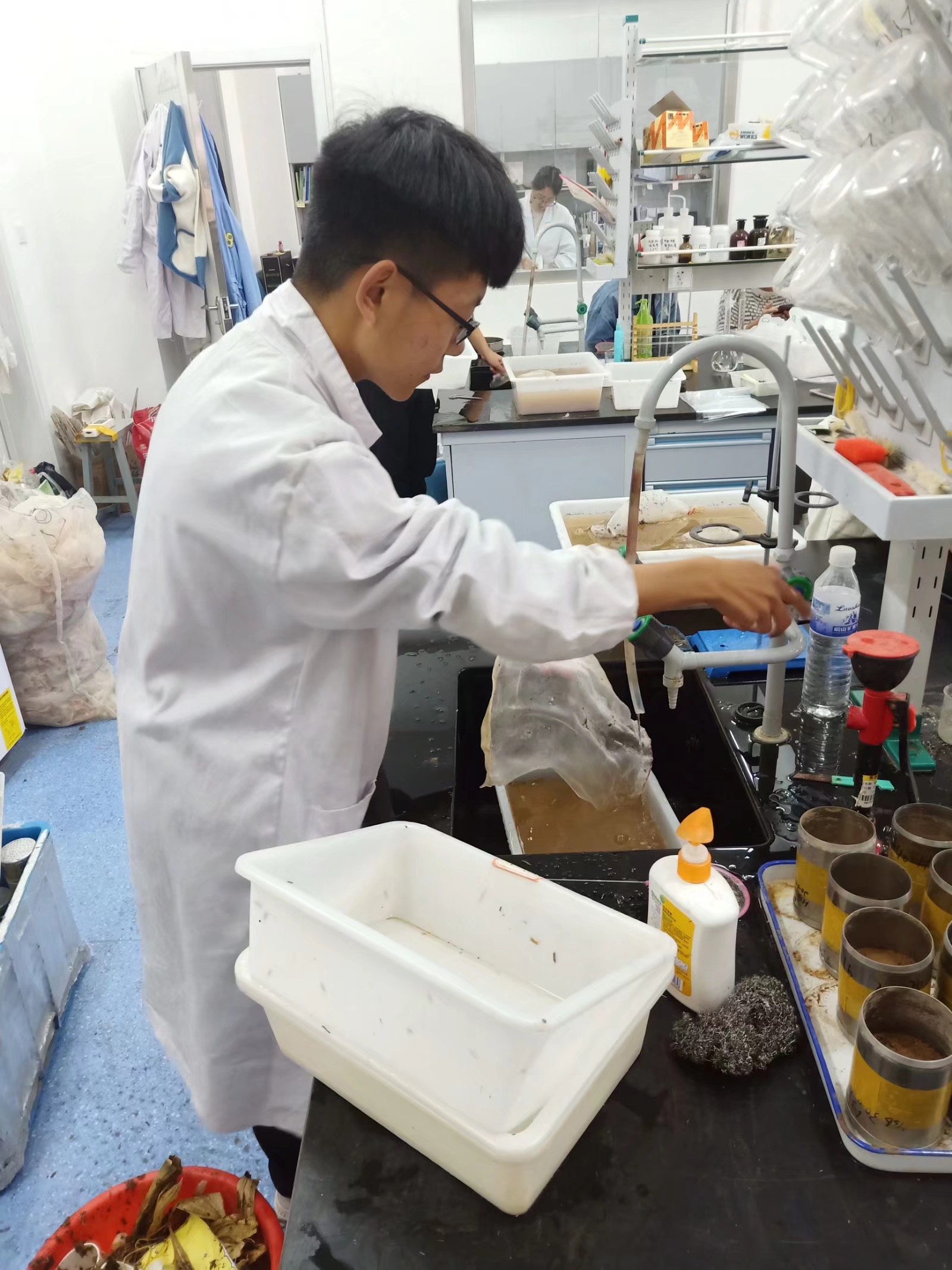 在实验室工作人员带领下,同学们来到泡满秸秆和玉米根的盆前,通过工作人员介绍玉米根系的主要特点,秸秆和玉米根的辨别方法,同学们两人一组开始了挑根工作。工作中,同学们专心致志,有条不紊。最终在大家共同的努力下,玉米根与秸秆有序地被分离开来。经过工作人员检验,同学们的工作得到肯定。挑根工作虽苦虽累,但同学们丝毫没有抱怨,反而在挑根的工作中体验乐趣。
