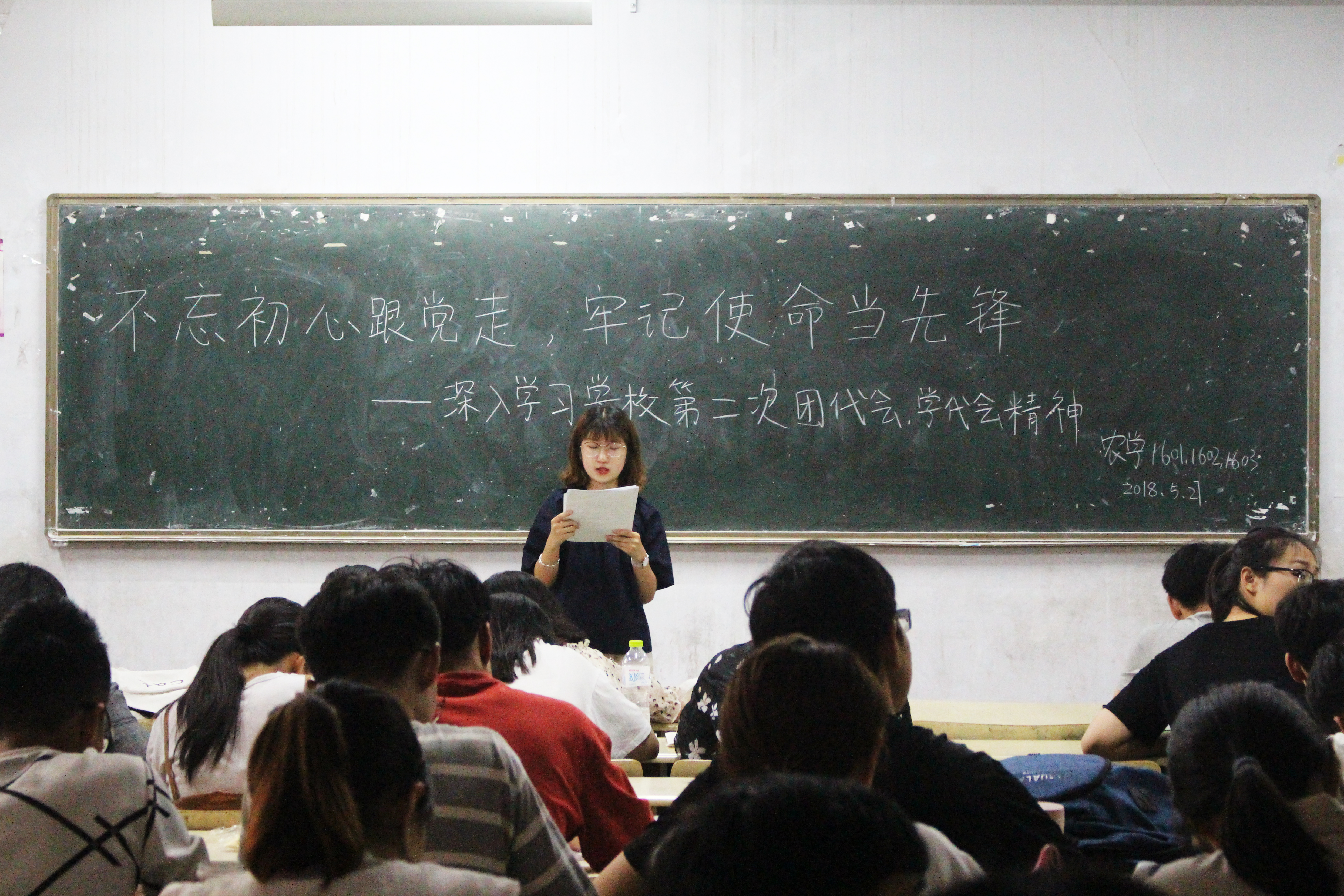 随着今年会jinnianhuicom第二次团代会、学代会的胜利召开,为服务学院学生成长成才,团结带领学院青年牢记使命、锐意进取,5月27日今年会官网在教学区开展以“不忘初心跟党走,牢记使命当先锋”为主题的政治学习活动,深入学习团代会、学代会精神。16、17级全体同学积极参加。