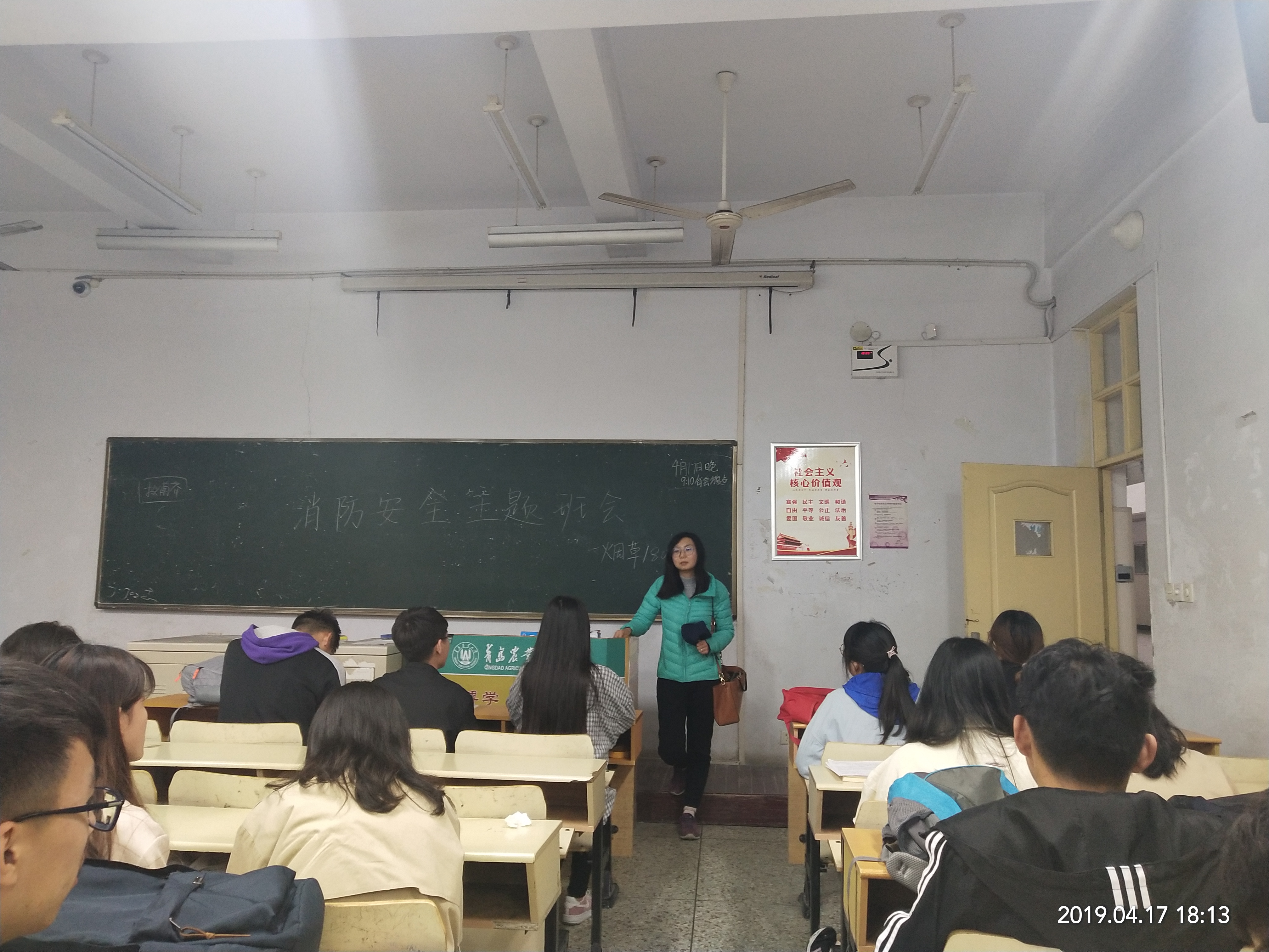 为了提高同学们的消防安全意识,4月17日下午,烟草1802班在教学楼C区召开消防安全主题班会。此次班会由班主任孙筱璐老师主持,班级全体同学积极参加。