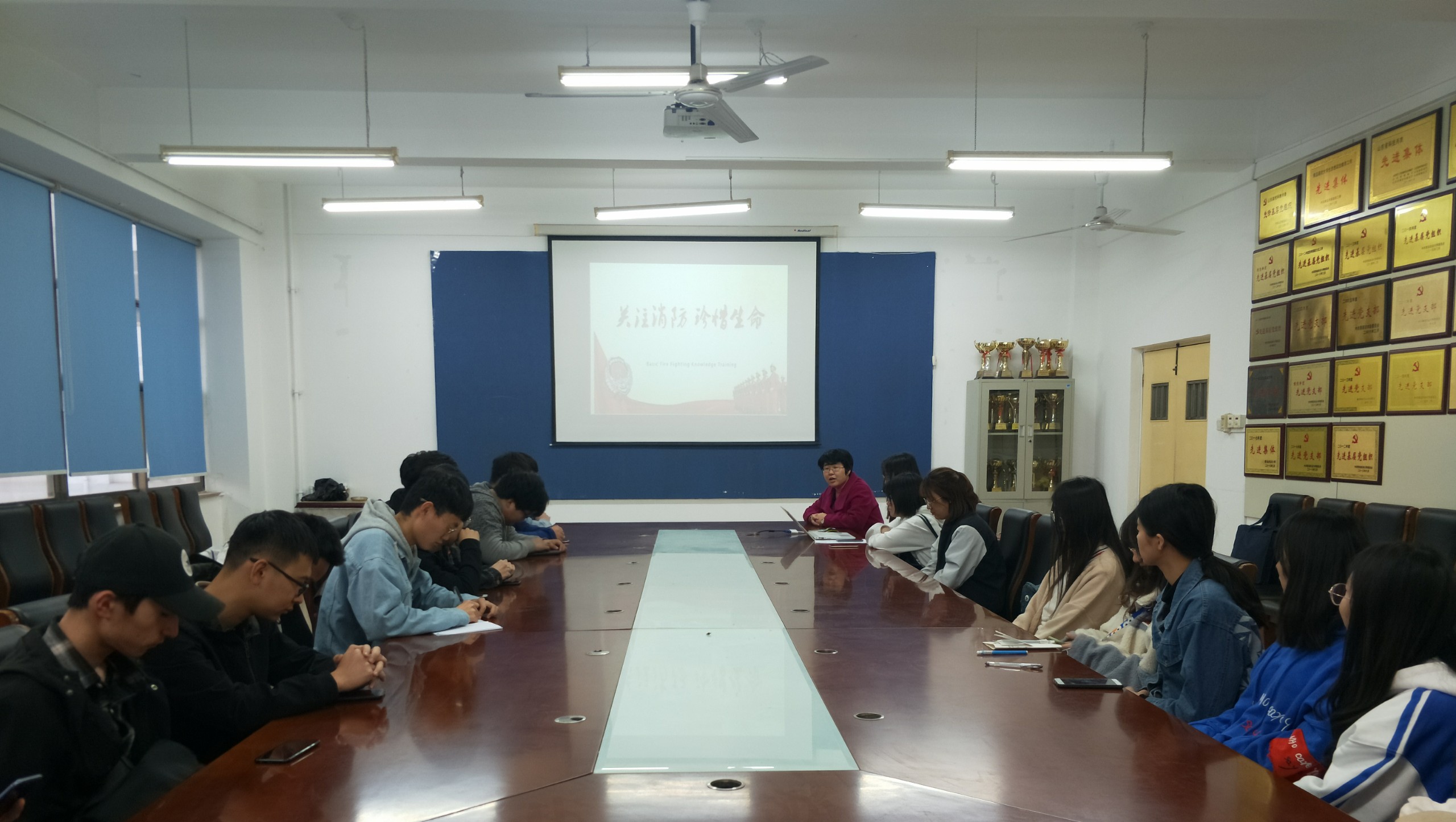 为加强同学们的消防安全意识,提高同学们的自护自救能力,4月16日,今年会jinnianhuicom烟草1702班于生物楼N区举行消防安全班会,班级同学积极参加。班主任郭新梅主持了本次会议。