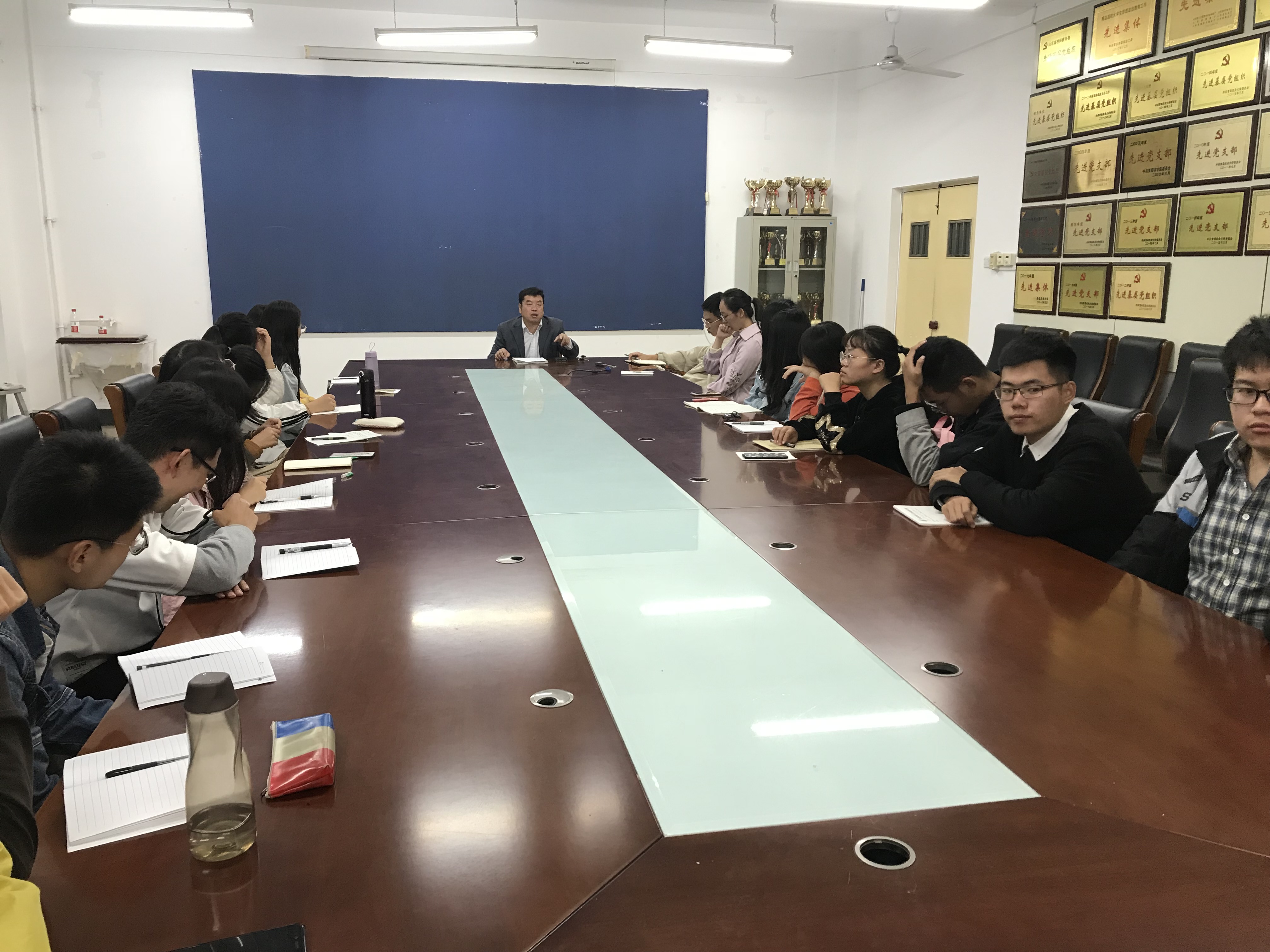 会议伊始,班主任张恩盈老师着重表扬了班级三好学生,优秀校级学生干部,积极分子名额分配,贫困生助学金的分配理由。而后,班主任点明班会主题,着重强调班级同学目前最重要是事情即学习,分享考研经验,通过多方面,深层次强调考研与考博的重要性,劝诫同学未来要从现在开始规划,制定自己的学习方法与任务,劳逸结合。