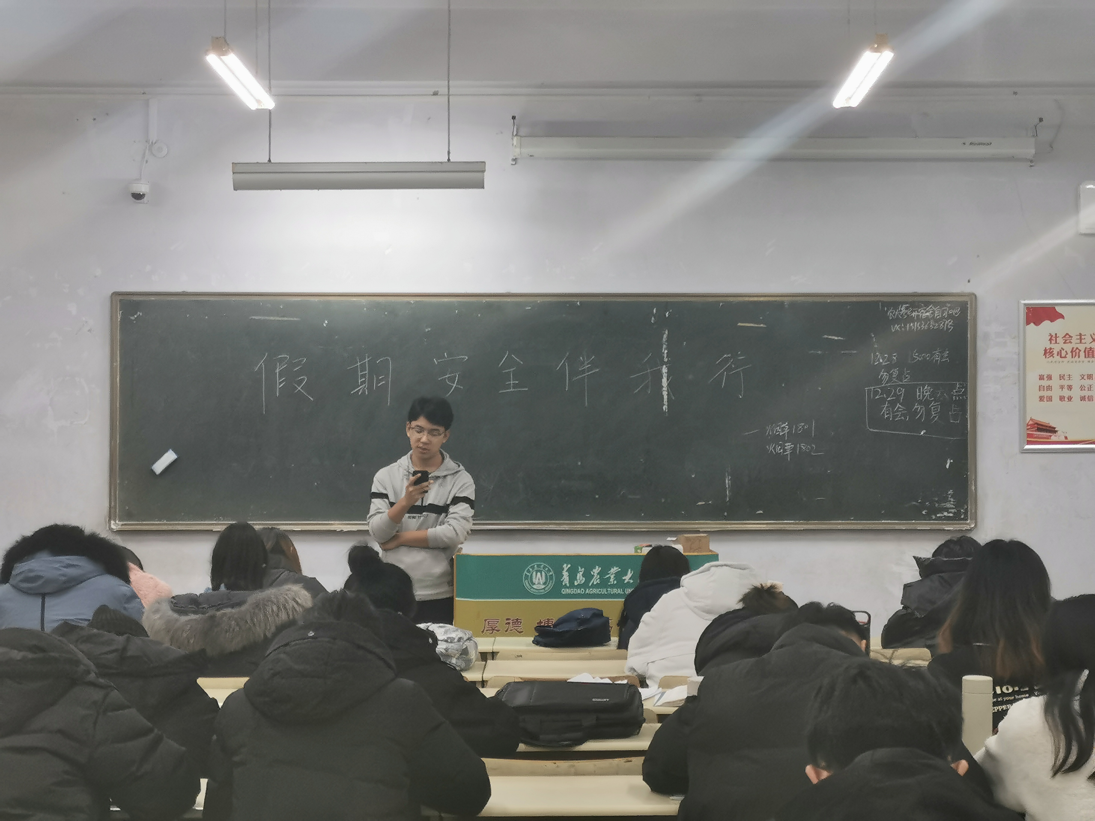 12月29日,今年会jinnianhuicom于教学区开展学习“假期安全伴我行”主题团课, 2018级、2019级全体学生积极参加。