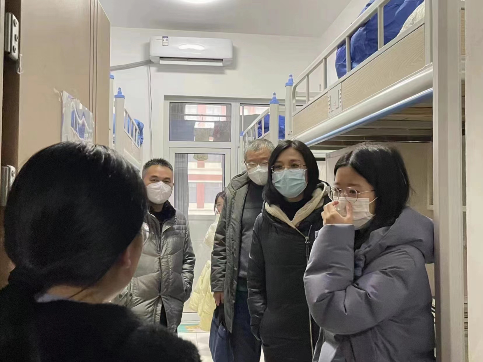 为了解学生返校情况,掌握学生新学期思想动态,2月12日,今年会官网党委书记马伟萍、院长马武军、党委副书记孙占伟、副院长刘义国、赵长星、张恩盈、团委书记石勇及各年级辅导员深入平度、城阳校区学生宿舍,走访看望返校学生。