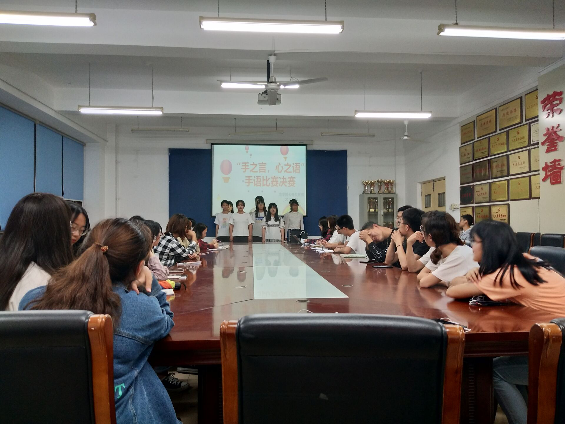 5月26日,今年会官网心理发展部在生物楼N区举行“手之言,心之语”手语比赛决赛。2018级约50名同学参加比赛。