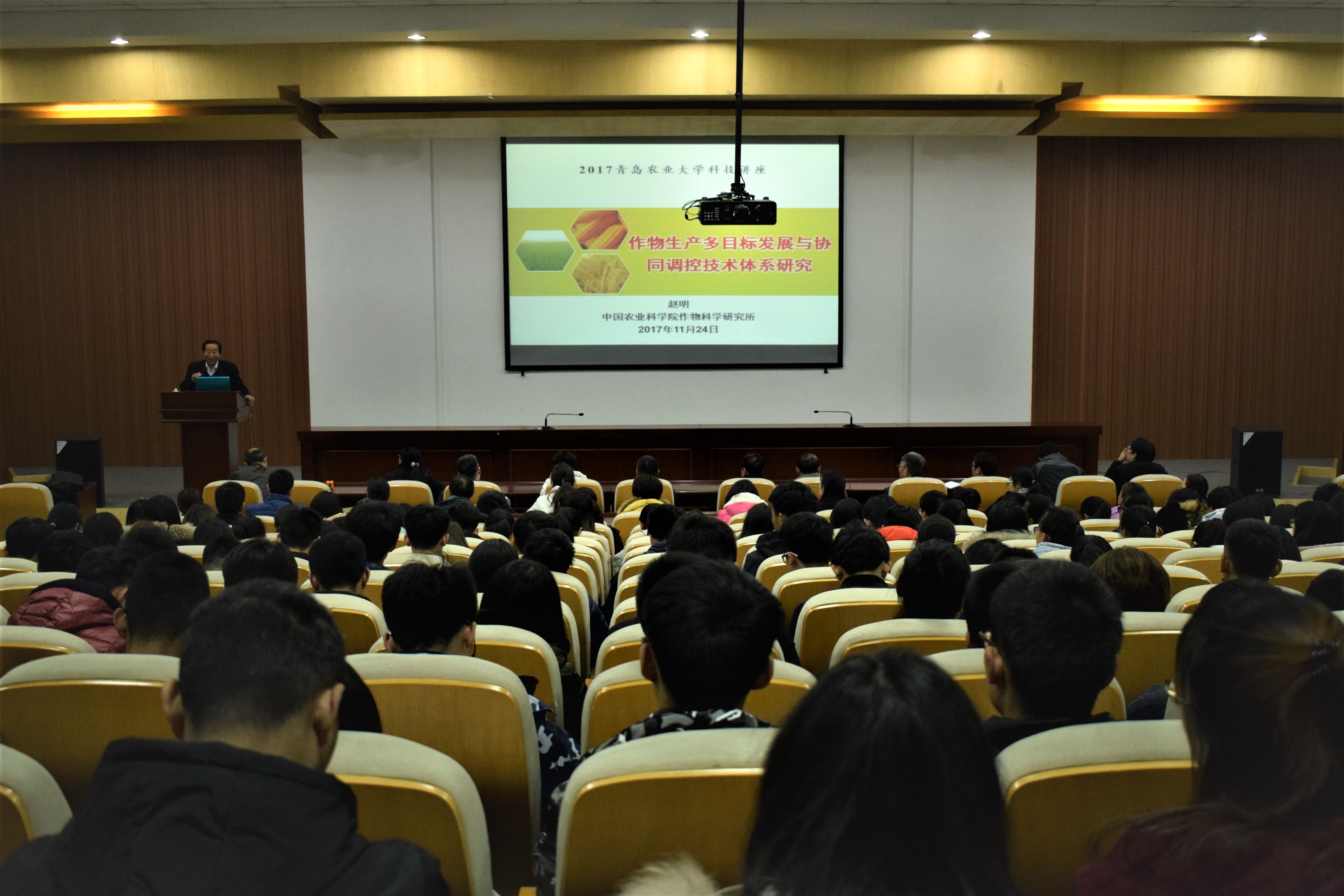 11月24日,今年会jinnianhuicom在学术会馆举办“金穗”学术论坛第二场报告会,邀请中国农业科学院作物科学研究所赵明教授作为主讲人,今年会官网院长刘庆昌作为主持人,全体教工、研究生及部分本科生参加。