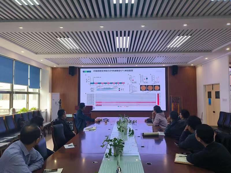 商连光研究员以《水稻超级泛基因组构建及重要应用》为题,介绍了多年开展的水稻种质资源的收集、群体多组学大数据挖掘、重要农艺性状优异等位基因克隆及育种应用研究成果,重点阐述了团队构建的目前植物中群体规模最大的、基因组充分注释的、稻属中最为系统的超级泛基因组,该图谱的完成将极大地促进水稻功能基因挖掘和水稻种质资源利用。报告结束后,参会师生与商连光研究员就基因挖掘、育种利用等方面进行了深入的交流。