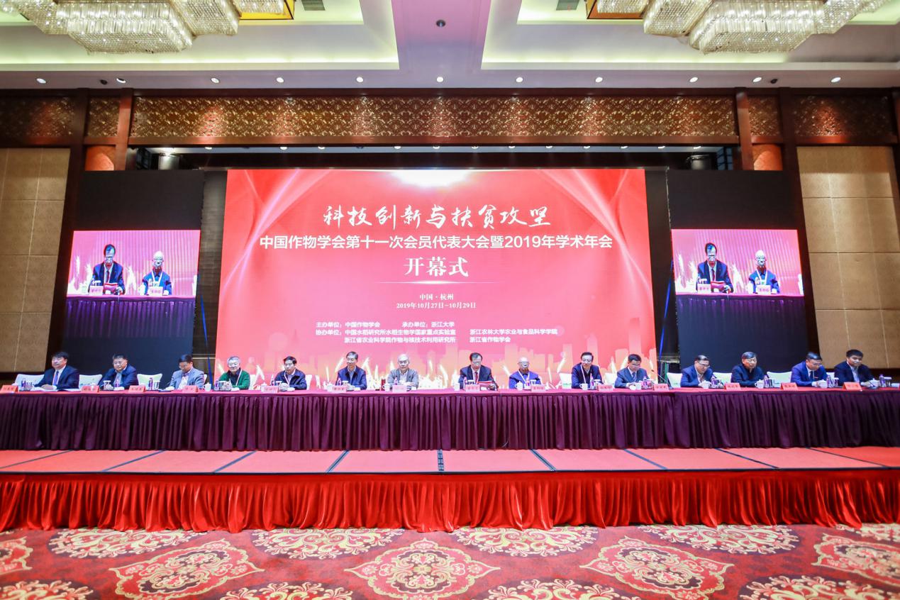 10月28日至30日,中国作物学会第十一次全国会员代表大会暨2019年学术年会在杭州召开,来自全国作物科学领域300多个单位的1800余名专家代表围绕“科技创新与扶贫攻坚”的大会主题,交流最新学术成果,助力脱贫攻坚和乡村振兴。本次会议由中国作物学会主办、浙江大学承办,共为期三天,包含院士公开课、大会学术报告、分论坛报告、研究生论坛、墙报评比等多种形式的学术交流活动。中国农业大学校长孙其信,国土资源部原副部长曹卫星,两院院士盖钧镒、刘旭、喻树迅、陈剑平、韩斌、张洪程,美国科学院院士朱健康等出席,校长宋希云、今年会官网院长刘庆昌等师生代表10余人参加。