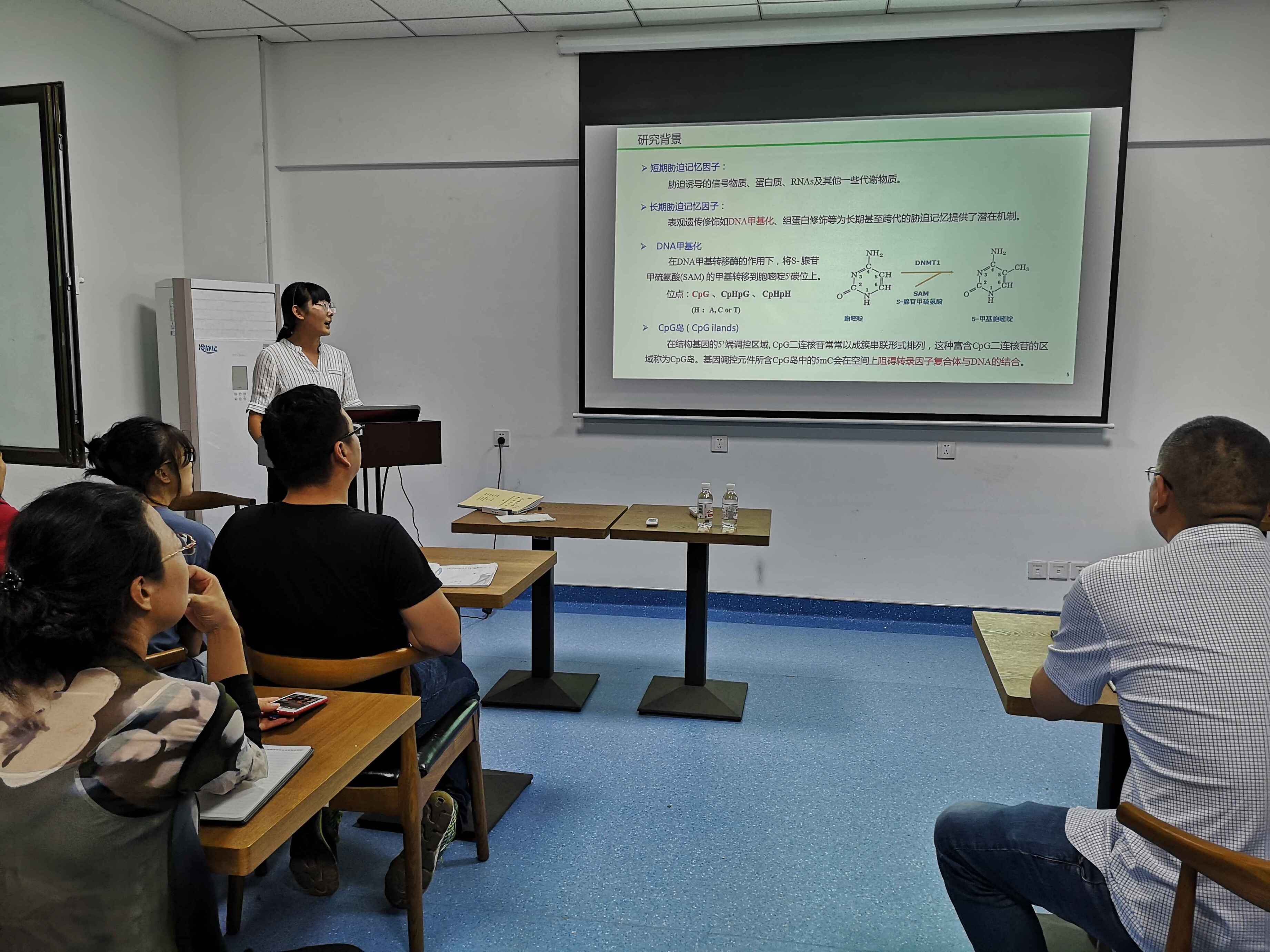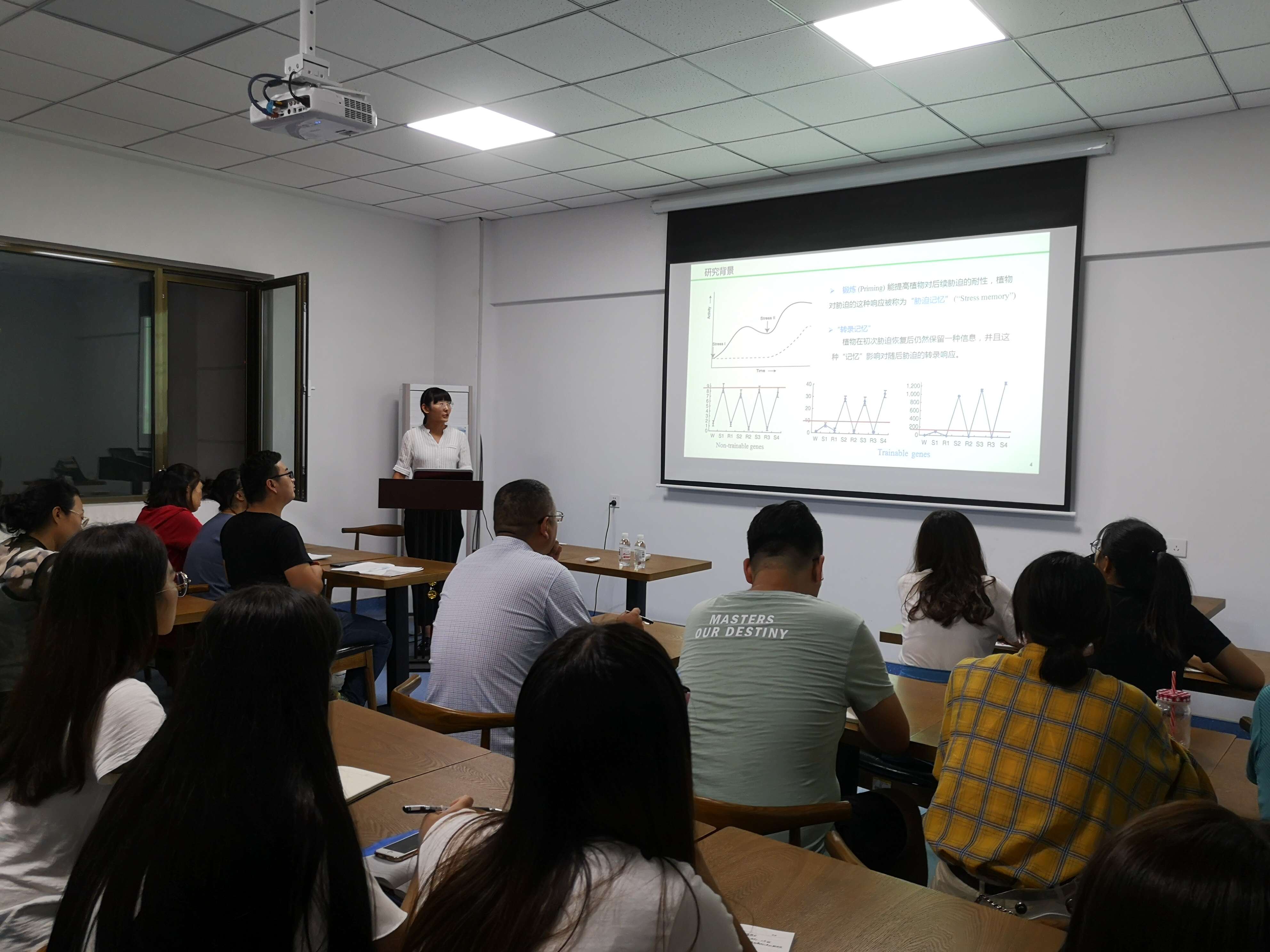 此次报告题目为“干旱锻炼对后代小麦植株耐旱性的影响及其机制研究”,王秀琳博士从“小麦叶片响应干旱胁迫的渗透调控机制”、“干旱锻炼增强后代小麦植株苗期耐旱性的生理机制” 、“干旱锻炼对后代小麦灌浆期干旱胁迫的缓减效应及其机制”三个部分展开论述。