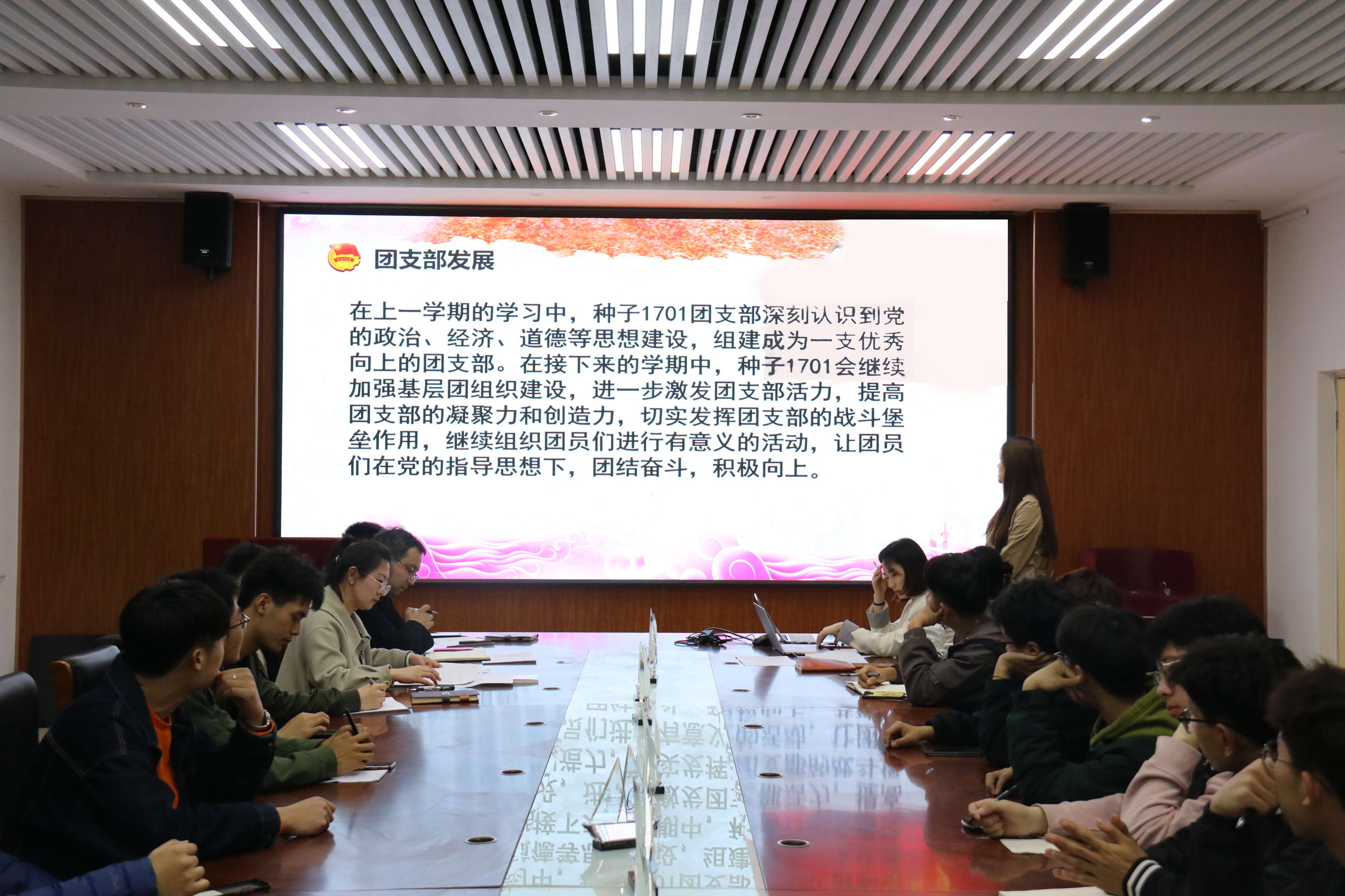 汇报会上,各团支部以PPT形式依次进行汇报展示。各团支书分别从本团支部的组织架构,团支部思想建设、制度建设、学风建设等方面进行了总结,同时对团支部存在的问题与不足进行分析,并对团支部未来的工作做出了规划和展望。各团支部的汇报准备充足,内容丰富,充分展现了各团支部的特色。