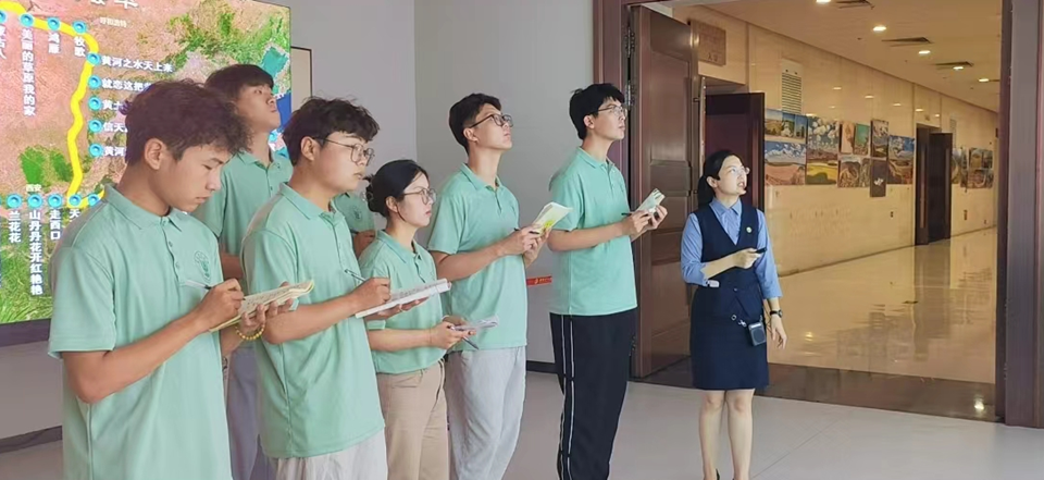 实践服务团参观了东营市黄河文化馆的第一展厅、第二展厅、第三展厅和黄河重大国家战略东营实践主题展等展厅,亲眼目睹了黄河源区的民俗风情和沿黄流域沧海桑田的迭变历程,领略了在黄河孕育下塑造的灿烂华夏文明。实践服务团沿着黄河流域的历史脚步,观看复原的古代场景和农业生产过程,重点了解了古代制盐过程和东营盐业文化。在黄河流域生态保护和高质量发展重大国家战略东营实践主题展中,实践服务团追随习近平总书记的“黄河足迹”,了解到黄河三角洲国家级农业高新技术产业示范区在盐碱地种业创新上实现突破,为推进“改地适种”向“改种适地”的转变打下了坚实基础。