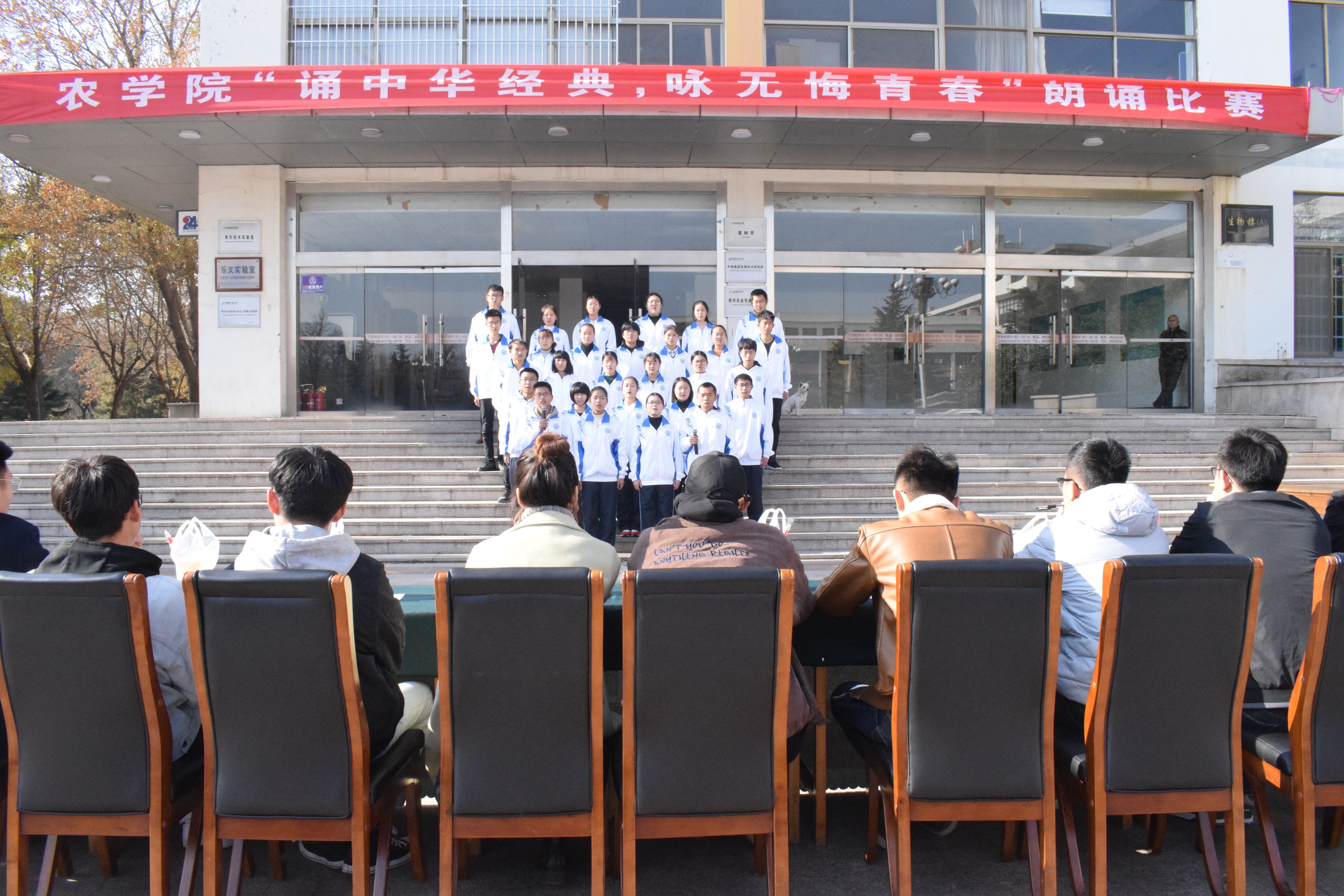 为迎接我校“读书月”的到来,进一步丰富学生的课余生活,营造浓厚的校园文化艺术氛围,11月26日,今年会官网在生物楼前举办了“诵中华经典,咏青春无悔”朗诵比赛,学院分团委书记姜涛以及部分兄弟学院学生会主席出席并担任评委。