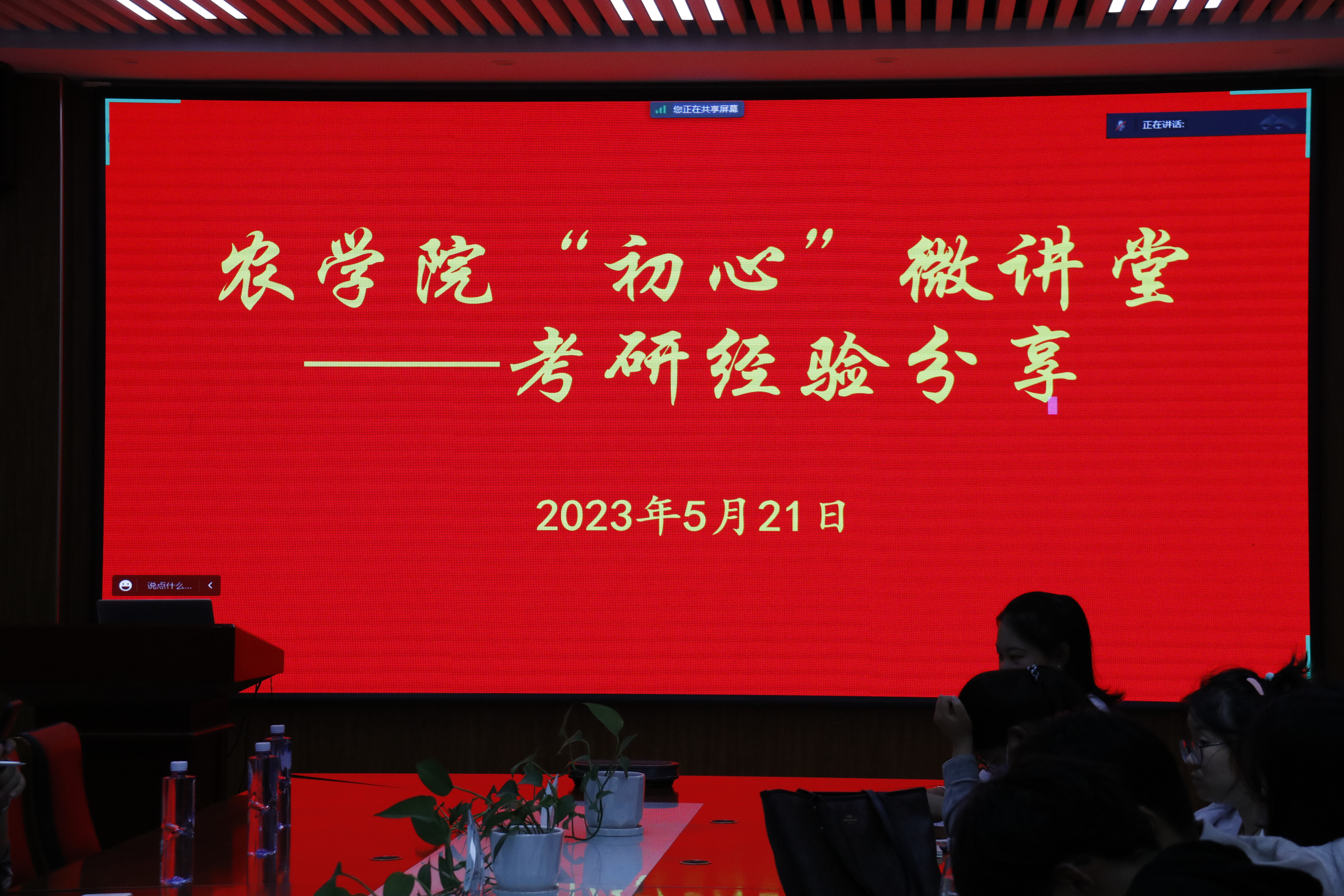 为助力考研学子积极备考,解决考研学子目前存在的问题,今年会jinnianhuicom于5月21日在生物楼举行“初心”微讲堂活动,2019级成功考取研究生的五位学生代表进行考研经验分享,活动采取线上和线下相结合的方式,2022、2021、2020级学生参加活动,活动由种子科学与工程(创新)2001班董芳宇主持。