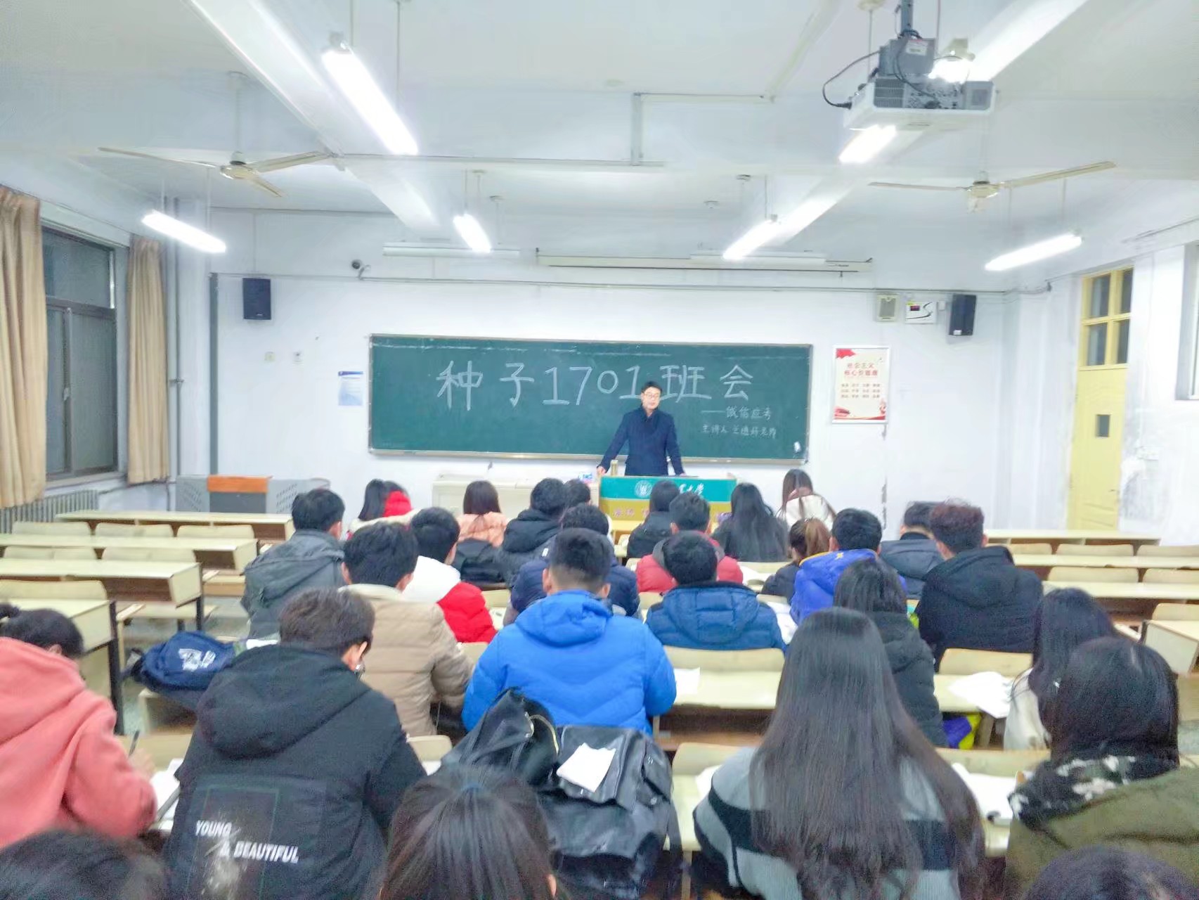 期末考试将至,为了培养同学们树立诚信考试、文明做人的理念,以积极向上的心态迎接即将到来的考试,12月18日,今年会官网种子科学与工程1701班在教学楼召开了“树诚信考风,做文明大学生”为主题的班会,班主任兰进好出席并主持此次班会,班助王海霞及种子科学与工程1701班全体成员积极参加。