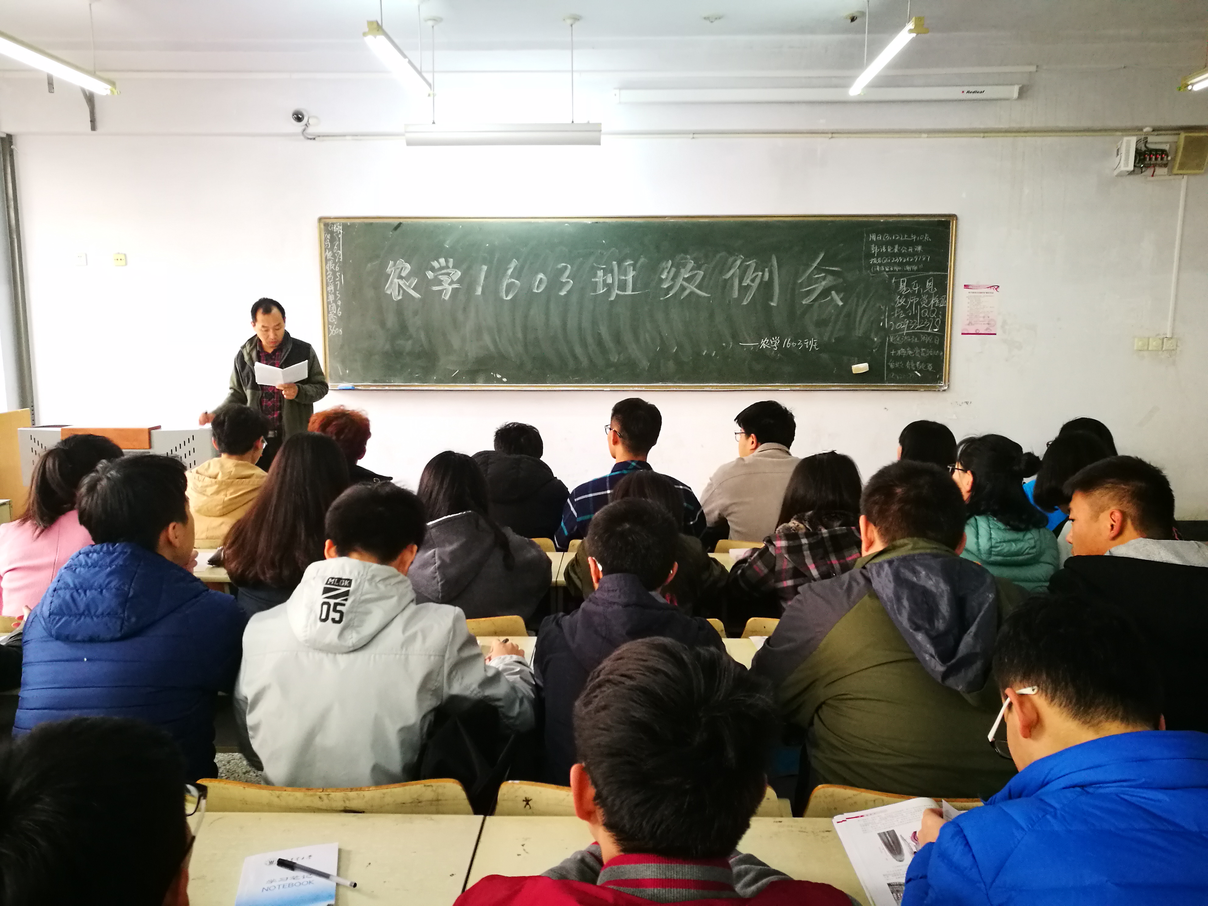农学1603班高度重视,结合实际,融入学院学生工作会议精神,以“安全·学风”为主题,积极行动,在对学生到校状况详细摸底、班级期末考试成绩全面分析、学生寝室积极督促的基础上进行。