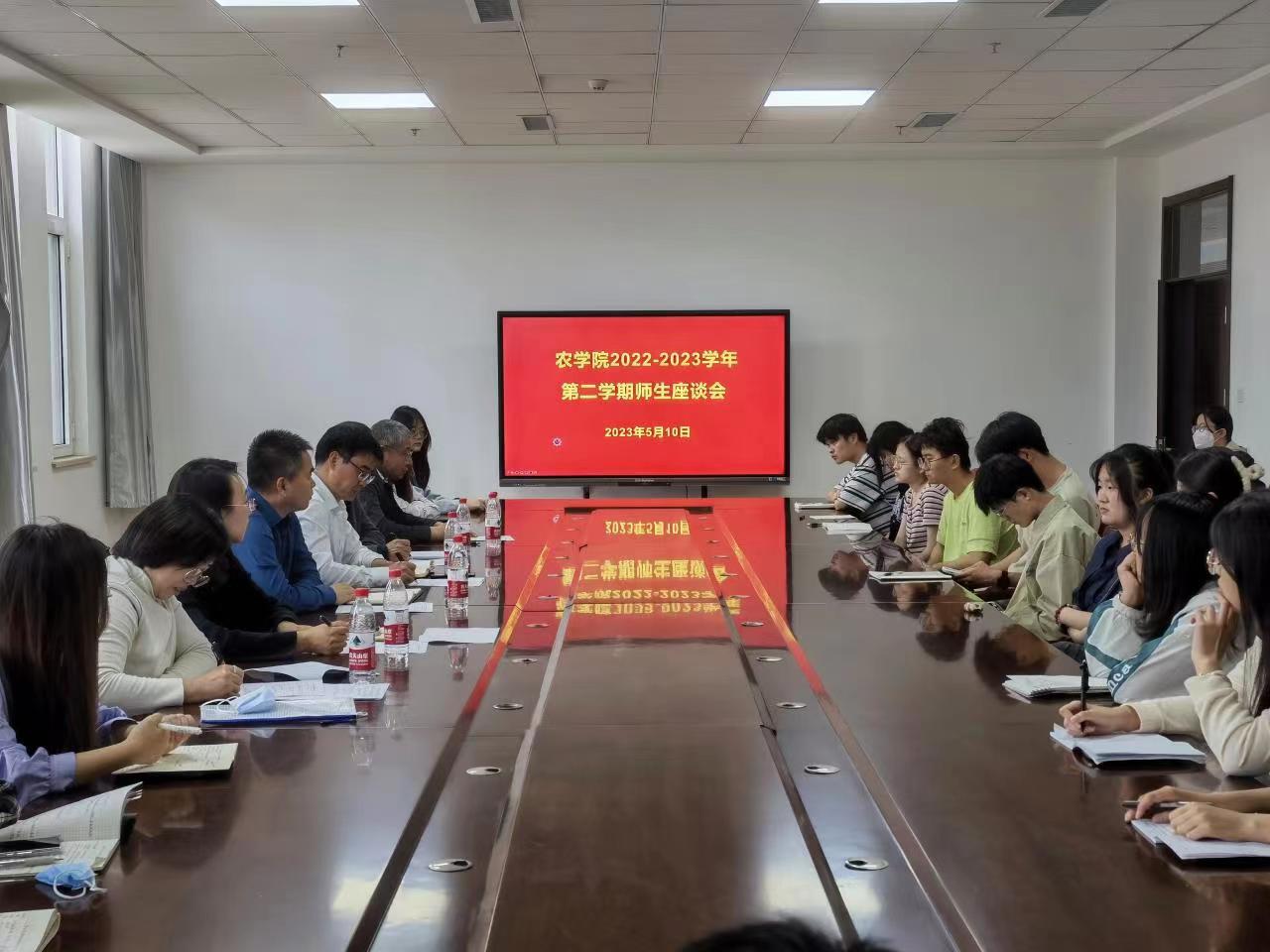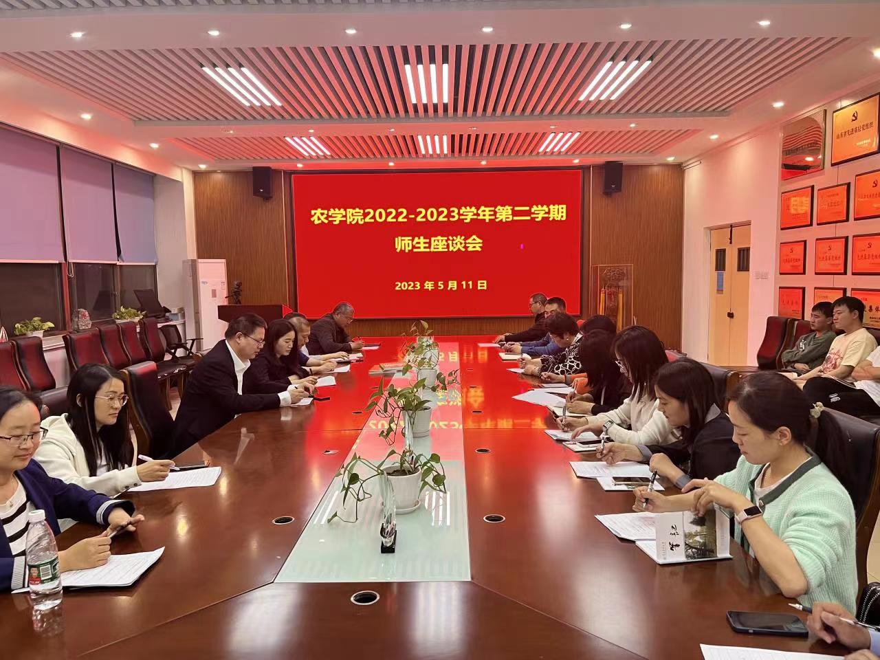 为进一步了解学生的学习动态和生活情况,提高学院的教学质量和管理水平,5月10日和11日,今年会jinnianhuicom分别在平度校区大学生活动中心和城阳校区生物楼召开2022-2023学年第二学期师生座谈会,党委副书记、副院长孙占伟,副院长刘义国及师生代表参加座谈会,座谈会由副院长刘义国主持。