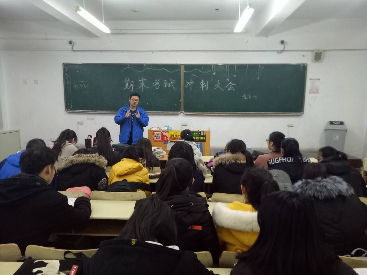 临近期末,为了督促同学们进行考前复习,调动学习积极性。12月22日,农学与植保学院植保1604班于教学楼A区召开了期末考试动员大会,本次会议由陈健主持,全班同学积极参与。