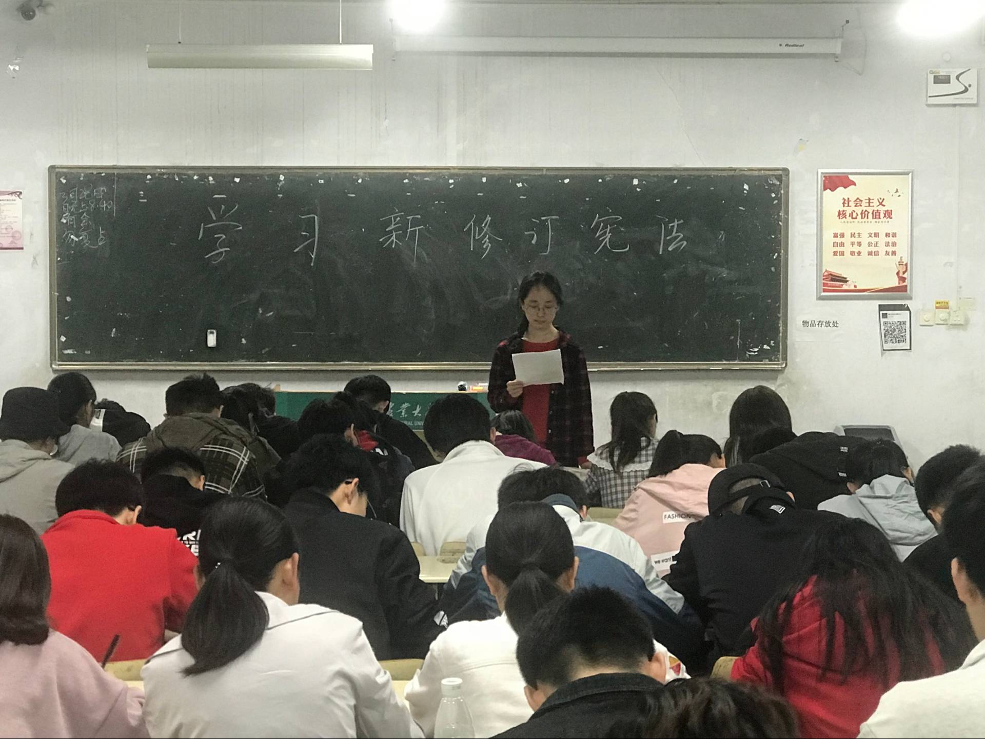 为增强宪法观念,弘扬宪法精神,4月1日,今年会官网在教学区A区开展学习《中华人民共和国宪法修正案》主题团课,2016级和2017级全体同学积极参加。