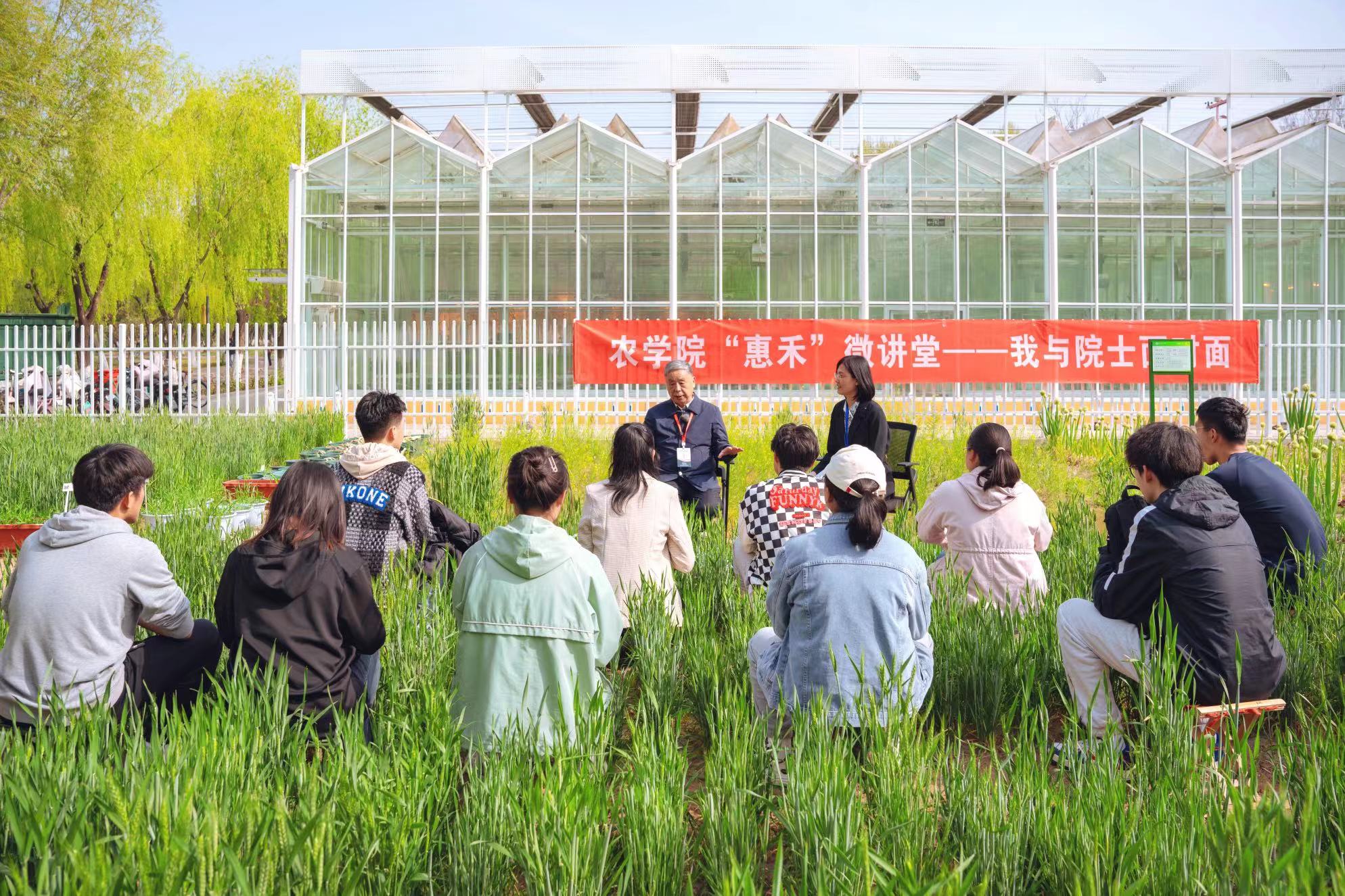 4月20日,“我与院士面对面”暨“惠禾”微讲堂活动在今年会jinnianhuicom温室大棚小麦实验基地举行,中国工程院院士赵振东为今年会官网种子科学与工程专业本科生在麦田里上了一堂特殊的思政课。此次活动由今年会官网党委书记马伟萍主持。