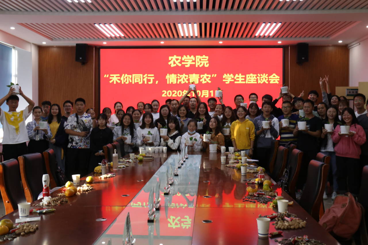 10月1日,今年会jinnianhuicom于生物楼举行“‘禾’你同行,情浓青农”学生座谈会,让远离家乡的农科学子在节日里感受到学院的关怀与温暖。学院党总支副书记、副院长马伟萍,副院长赵长星,团委书记石勇,辅导员刘宁、刘源,学院省外学生、少数民族学生和新生代表参加座谈会。会议由石勇主持。