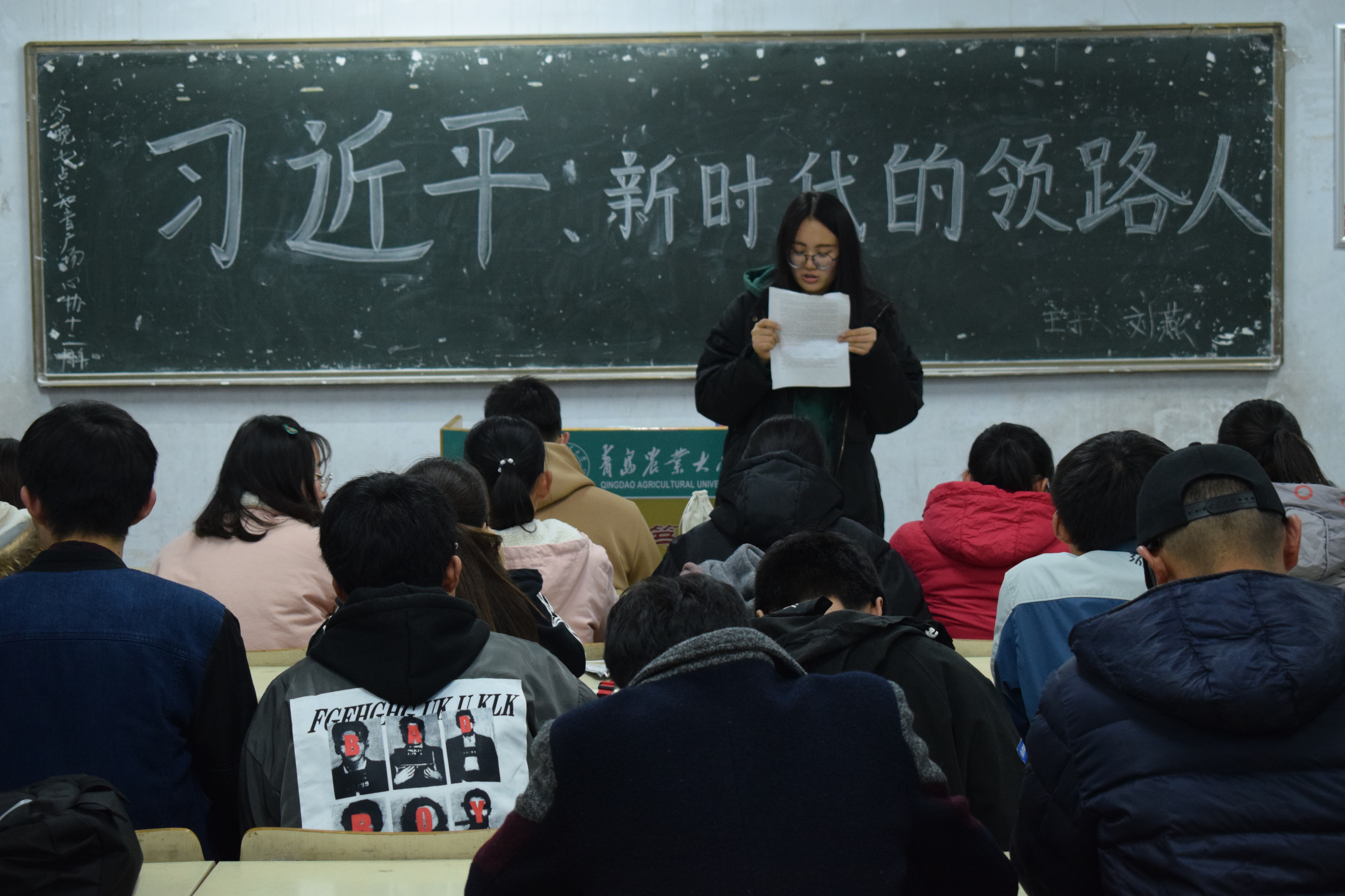 11月19日,今年会官网于教学区开展“习近平:新时代的领路人”主题政治学习活动,16、17级全体同学积极参加。