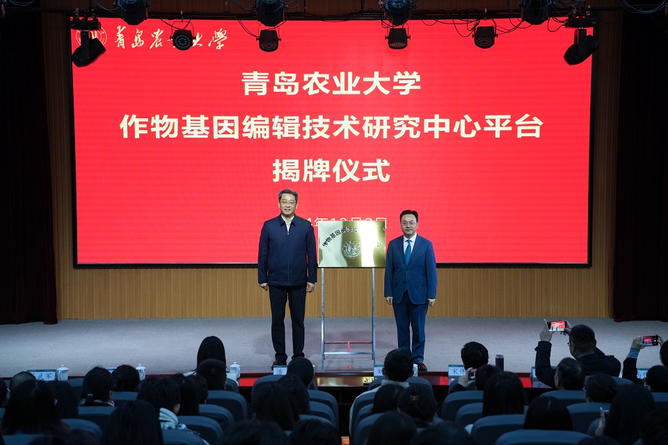 潘军代表学校为赖锦盛教授颁发聘书,聘任赖锦盛教授为特聘教授。赖锦盛对受聘学校表示感谢,同时表示,当前国家玉米、大豆生物育种产业化加快推进,作物基因编辑技术研究中心的成立恰逢其时,希望加强与学校合作交流,为国家粮食安全作出贡献。