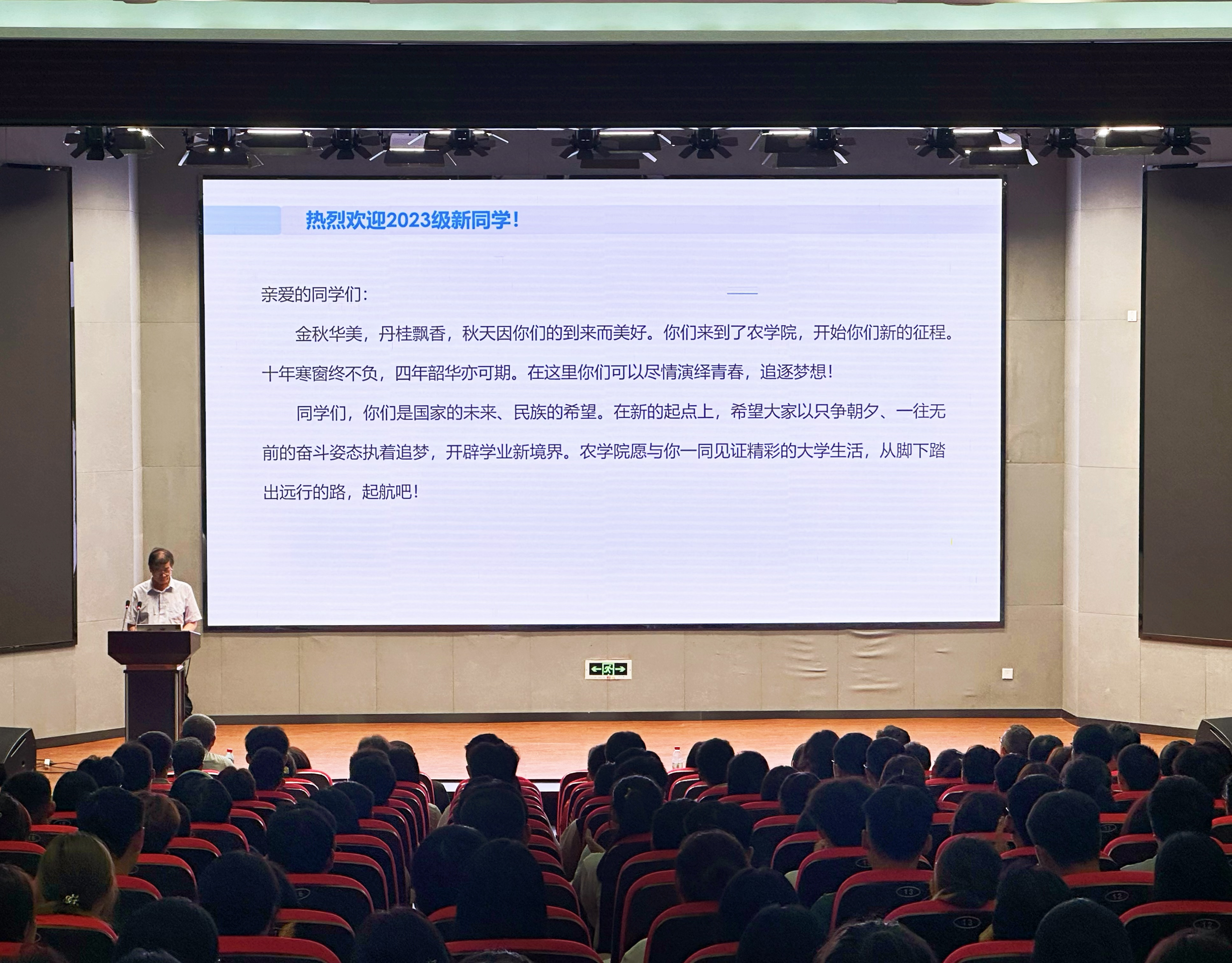 学院院长马武军于平度校区博学楼多功能厅为2023级本科生讲授“开学第一课”。他从“情浓青农,学农爱农”“务农重本,国之大纲”“笃定专业,不悔选择”“扎根沃土,不负韶华”等四个方面为同学们讲授“开学第一课”。围绕学院历史沿革、学科设置、专业介绍、学生概况、学院未来发展等,介绍了学院的基本情况,并对同学们提出三点要求:一是希望同学们深入学习党史,从历史和现实、理论和实践出发,自觉爱党爱国;二是希望同学们以强农兴农为己任,成为乡村振兴的主力军,严格要求自己,学习专业知识,能够做到“学以致用”,为“三农”事业贡献力量;三是希望同学们增强安全意识,提高防范能力,辨别不良信息,远离电信网络诈骗陷阱,增强自己的安全意识。