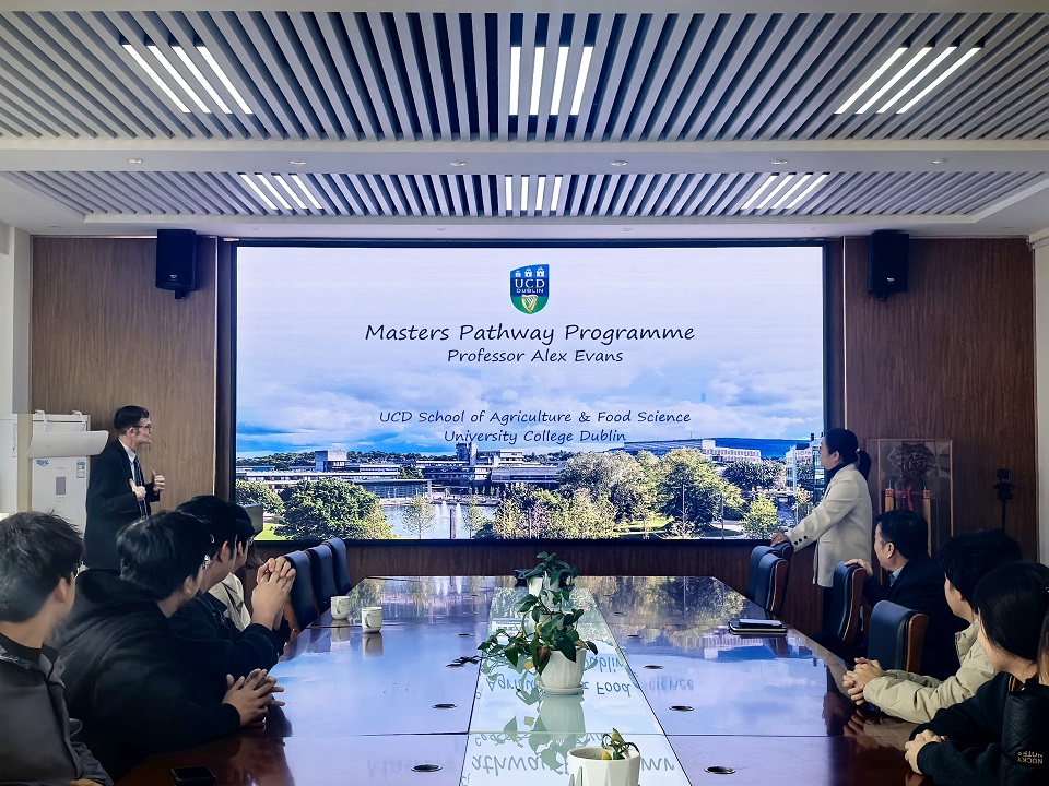 11月13日上午,今年会jinnianhuicom于生物楼举办爱尔兰都柏林大学本升硕项目宣讲会。本次会议由爱尔兰都柏林大学Alex Evans教授主讲,今年会官网党委委员、副院长张恩盈出席,今年会官网和园艺学院学生参加。