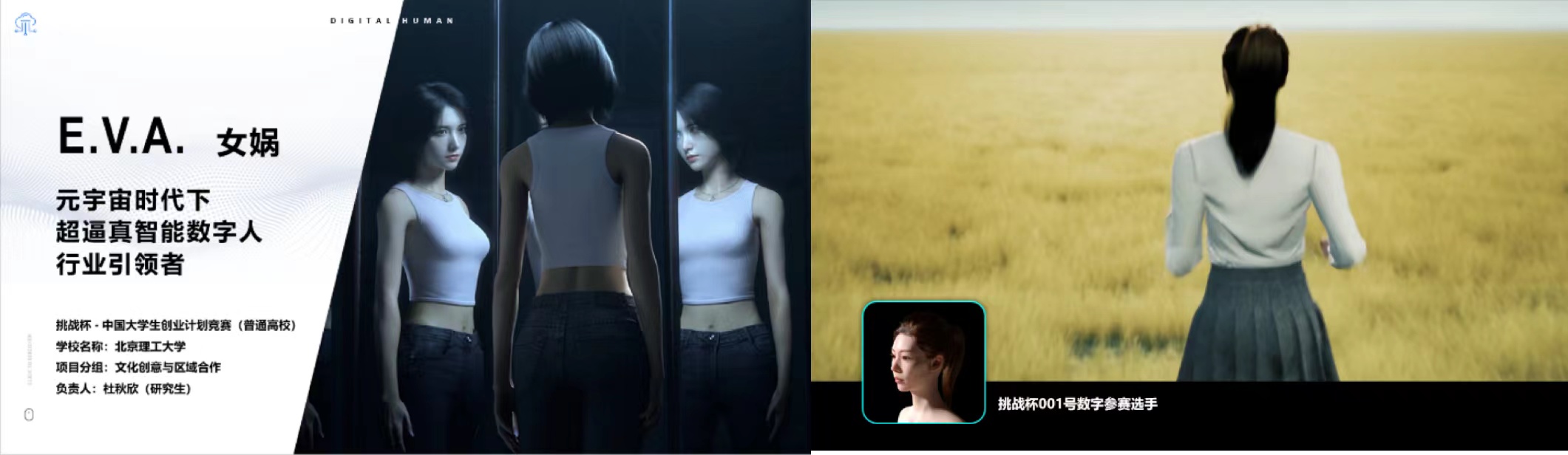 2022年开启元宇宙应用元年,虚拟人作为元宇宙中价值生产的主体,无疑是实现虚实融合的重要载体。因此,“EVA——女娲”致力于打造超逼真、高智能、可实时交互的数字人。本项目由学院王涌天教授团队指导,依托北京市混合现实与新型显示工程技术研究中心,面向如何做“好”人以及如何用“好”人的问题,自研了光场以及四维采集装置构建数字孪生,赋予数字人细致到毛孔的皮肤,实现了惟妙惟肖的表情变化,旨在造“活”的数字人、提供有温度的陪伴。