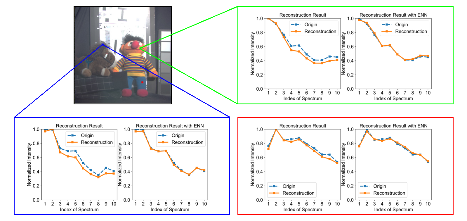 图3. OIS在真实世界数据集CAVE上的光谱重构结果,光谱分辨率10nm。