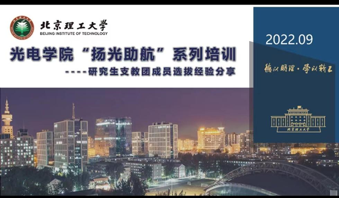 为加深2023届本科毕业生对支教等相关情况的了解,鼓励更多青年学子用青春奉献社会,参与到支教服务志愿活动中, 9月15日晚,beat365官方网站开展了“扬光助航”研究生支教团成员选拔经验分享会。本次会议采用线上会议的形式,邀请了2017级毕业生李欣龙分享经验,由辅导员张芝瑞主持。