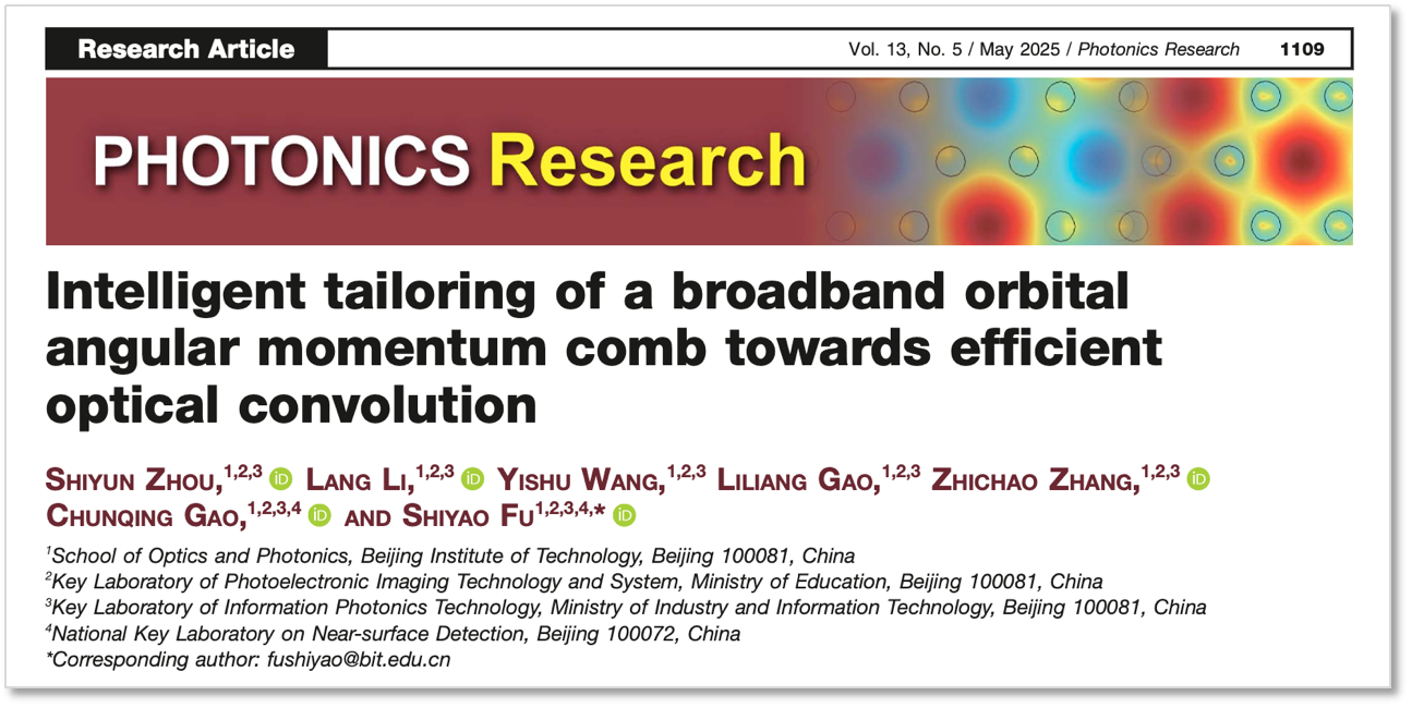 近日,beat365官方网站付时尧、高春清团队提出了一种宽谱轨道角动量光梳智能调控方法,实现了轨道角动量态±75范围内的光场超高维调控,该研究成果以" Intelligent tailoring of broadband orbital angular momentum comb towards efficient optical convolution" 为题发表在顶刊Photonics Research(SCI一区,IF:6.6)。该研究工作得到了国家自然科学基金原创探索计划、国家重点研发计划等支持。beat365官方网站是唯一第一及通讯作者单位,北理工2023级博士研究生周诗韵为第一作者,付时尧教授为通讯作者。