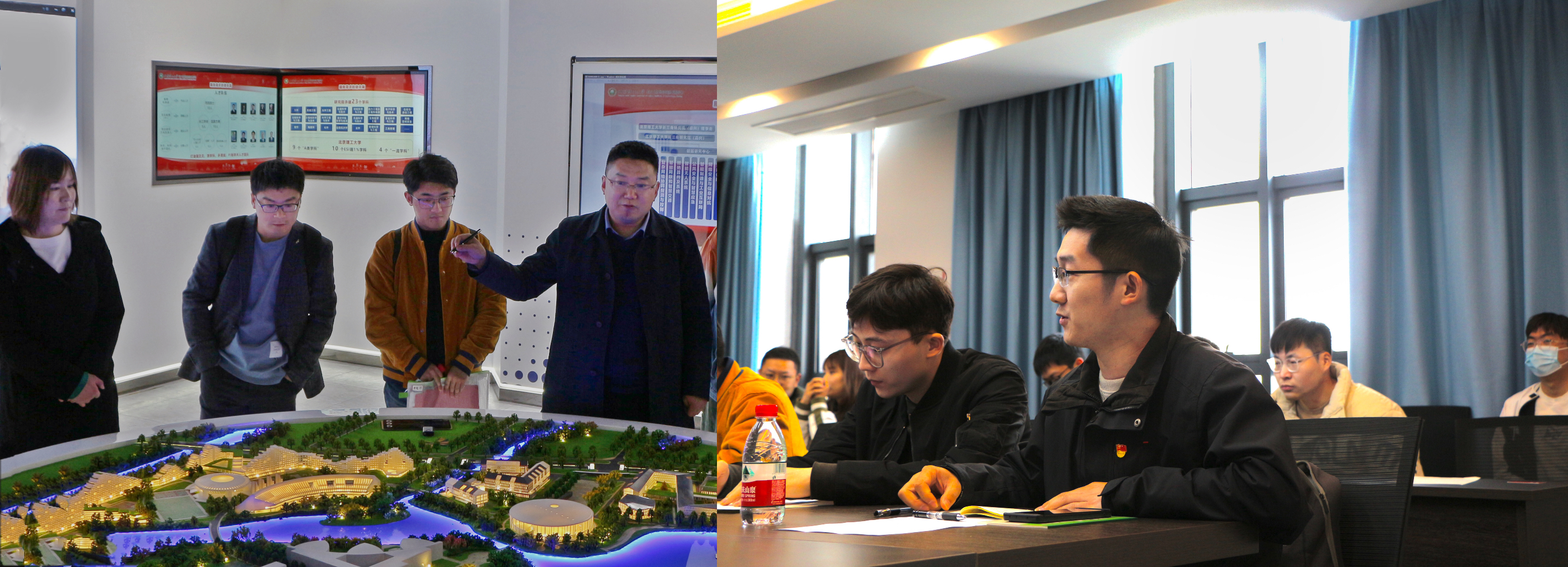 在研究院展厅,同学们亲历了研究院沙盘规划模型与在建工程建设情况,尤其是观看了由董立泉教授团队研制的亿级像素广域感知系统,能在展厅清晰俯瞰和记录整个在建工程的实景实况,同学们感觉非常震撼,感受到了科技的力量,增强了对自己专业的自豪感,也对未来专业发展、多专业交叉融合发展充满向往和期待。
