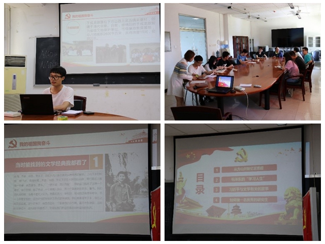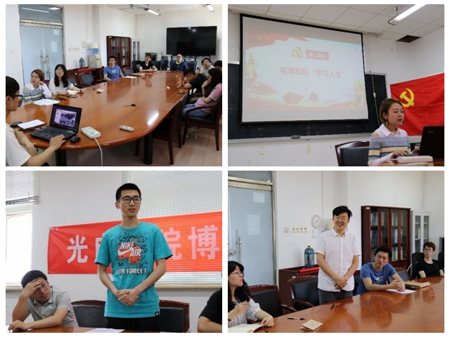 为更好践行这6点要求,发扬五四精神,5月21日下午1点,博士光工2班党支部在6号教学楼401会议室开展“我的祖国我奋斗——学风大讨论”主题党日活动。活动主要分为四个部分:支部成员培训分享汇报、分享毛泽东主席的学习故事、分享习近平总书记与文学的故事、以及“如何成为一名优秀的研究生”主题讨论。