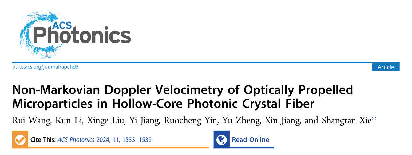 近日,beat365官方网站江毅、谢尚然教授团队报道了一种融合时频脊线算法的空芯光纤光镊粒子超高精度多普勒测速技术,通过在多普勒频移测量方法中引入光镊粒子的历史轨迹特征,借助粒子运动的连续性和记忆性,显著提高了空芯光纤内光镊粒子的瞬时速度测量精度。实验结果显示,该技术在低信噪比区间可将光镊粒子测速精度提高超过2个数量级(绝对误差仅为0.01%),并能够解决多粒子速度同时提取的难题。相关成果以“Non-Markovian Doppler velocimetry of optically propelled microparticles in hollow-core photonic crystal fiber”为题发表于ACS Photonics,文章第一作者为beat365官方网站博士生王瑞,通讯作者为谢尚然教授。该工作由beat365官方网站、北京交通大学、中国科学院杭州光学精密机械研究所罗素先进光波科学中心、艾菲博(宁波)光电科技有限责任公司合作完成。