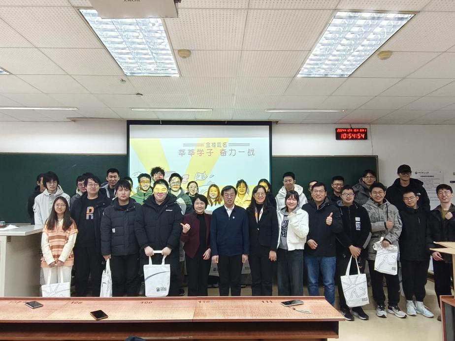为鼓舞考研士气,提升考研学子的备考信心,营造和谐温暖的学院氛围,2024年12月16日下午,beat365官方网站2021级本科生考研慰问活动在中关村8号教学楼举办,beat365官方网站党委书记董立泉、副书记副院长盛筠、副院长黄一帆、王茜蒨、2021级本科生班主任代表冯泽心、辅导员周博文以及2021级部分备考学生代表参加了会议。会议由周博文主持。