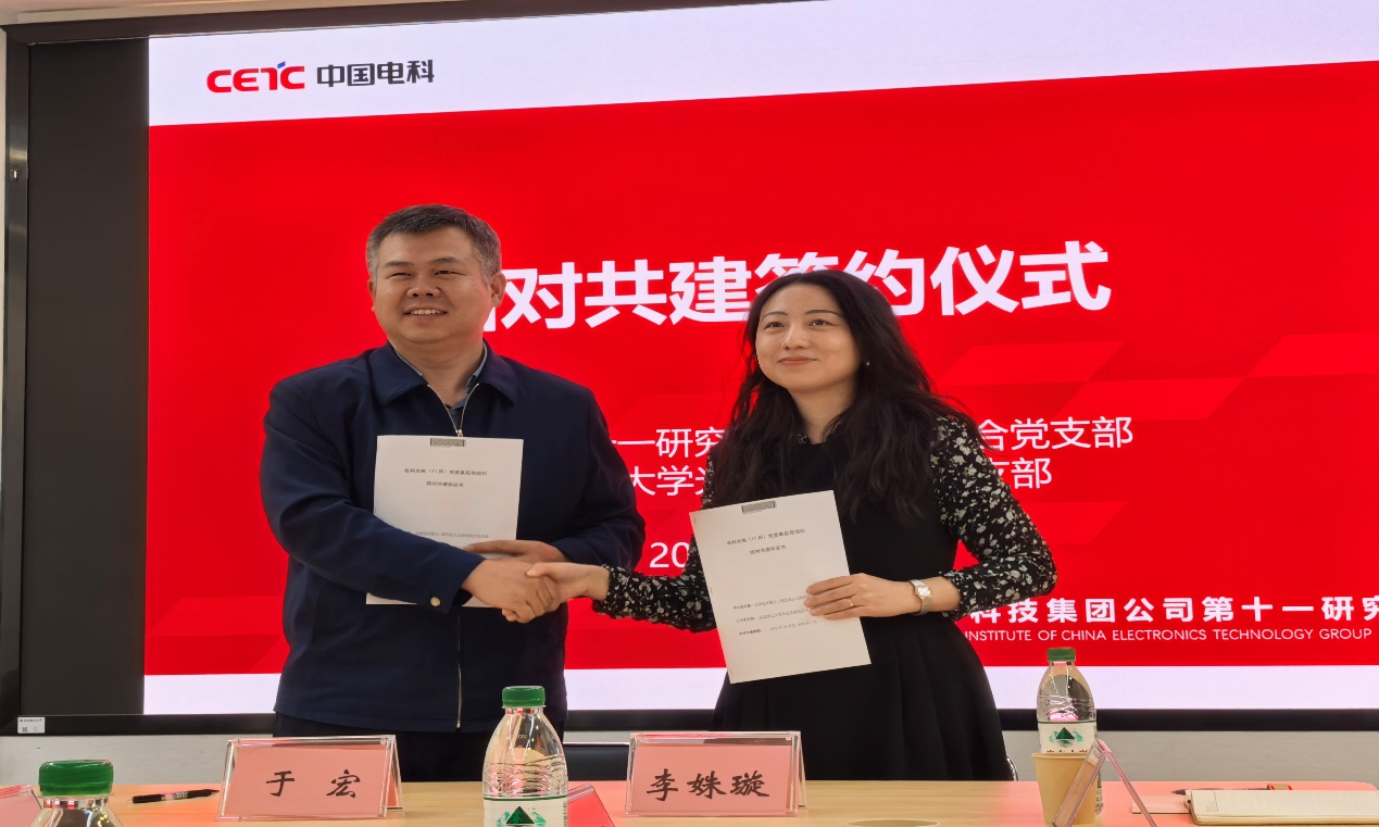 会上,中电科十一所人力保密联合党支部与学院机关党支部开展了支部结对共建协议签约活动。两个支部将紧密合作,积极开展联学共建活动,推动十一所与beat365官方网站合作的顺利开展。