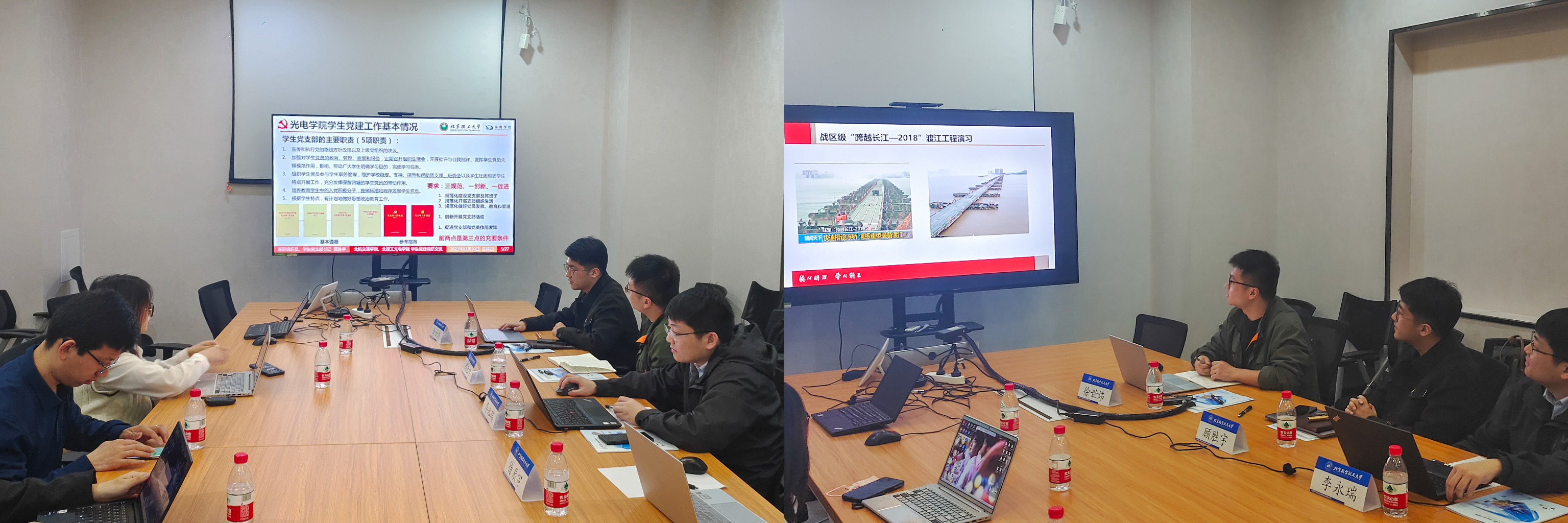 beat365官方网站专职辅导员李永瑞、兼职组织员代表、学生党支部书记代表和创新创业学生代表,北航交通学院专职辅导员张迎晨、蒋忠旺,兼职辅导员代表和学生骨干代表参加交流调研。