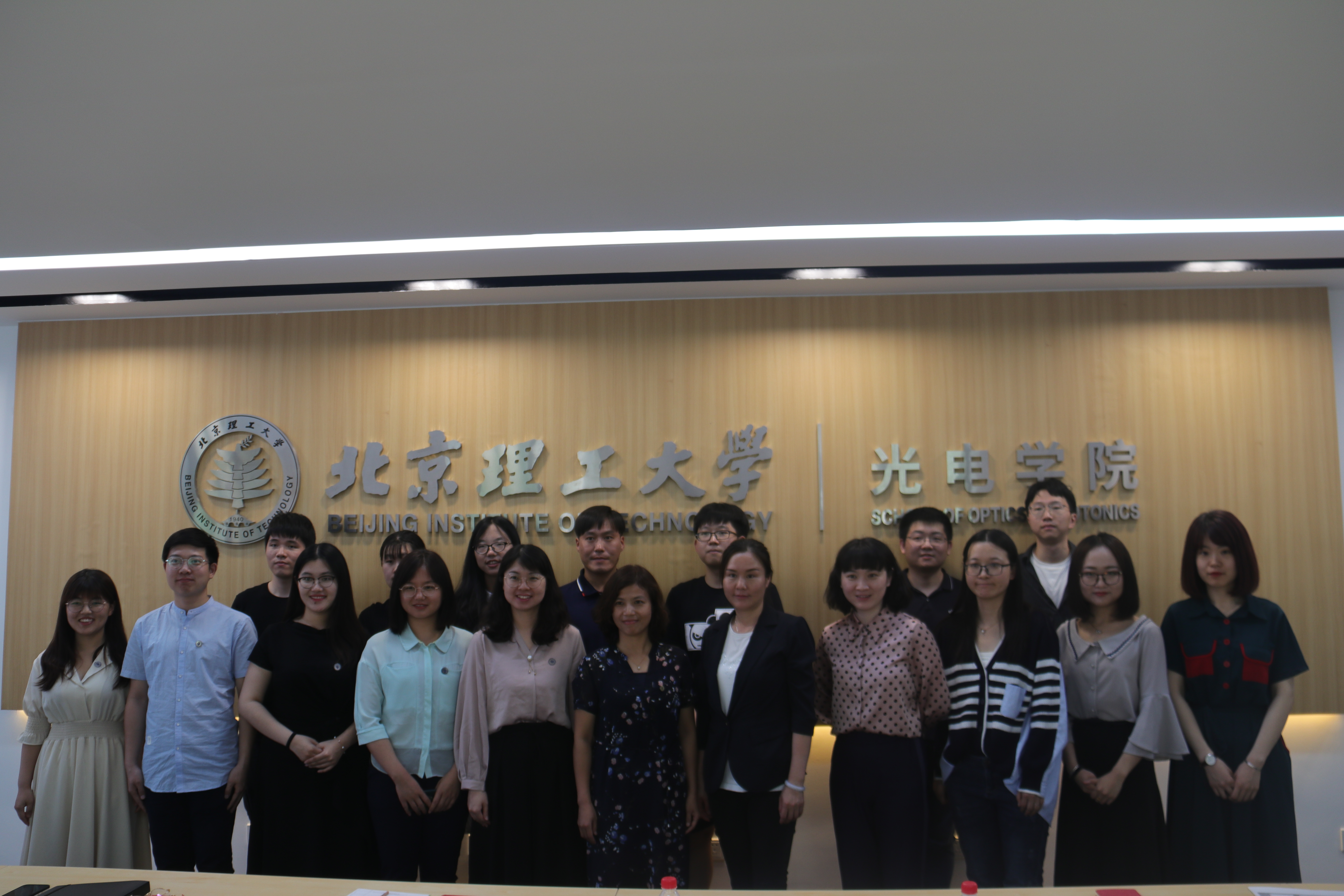 5月19日上午,天津大学精密仪器与光电子工程学院副书记副院长陆丽一行来我院就学生工作进行调研交流。北理工beat365官方网站党委书记邹锐、副院长黄一帆、副院长杨亚楠,天大精仪学院党委副书记陆丽、团委书记焦璇,两院学工办全体辅导员参加了此次调研交流会。会议由beat365官方网站学工办主任、团委书记韩笑主持。